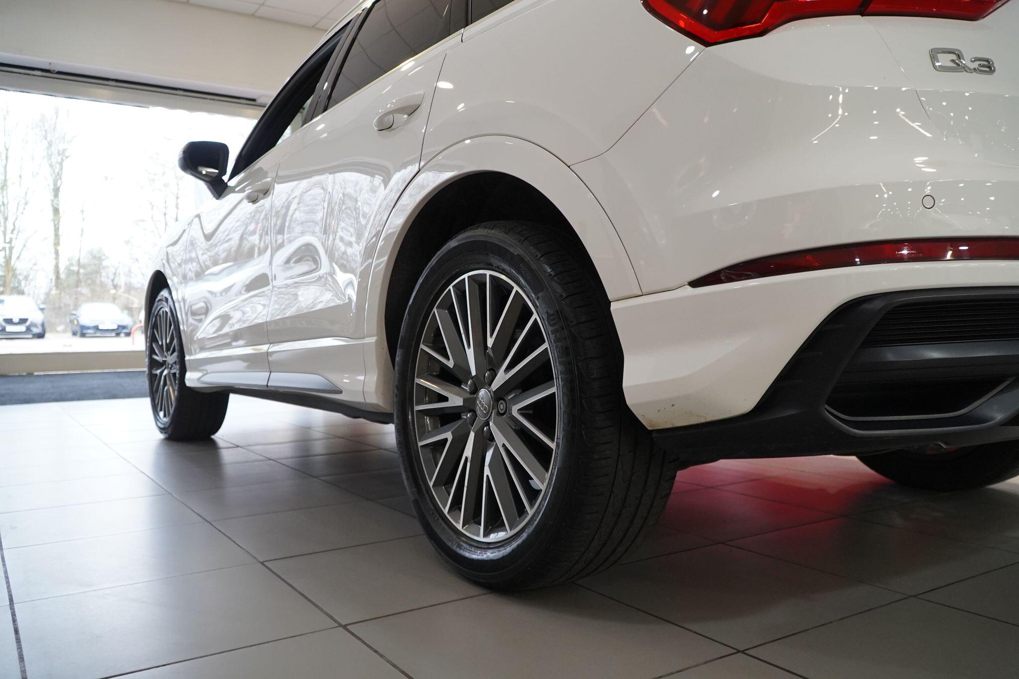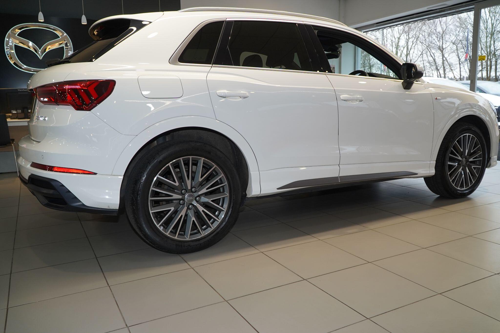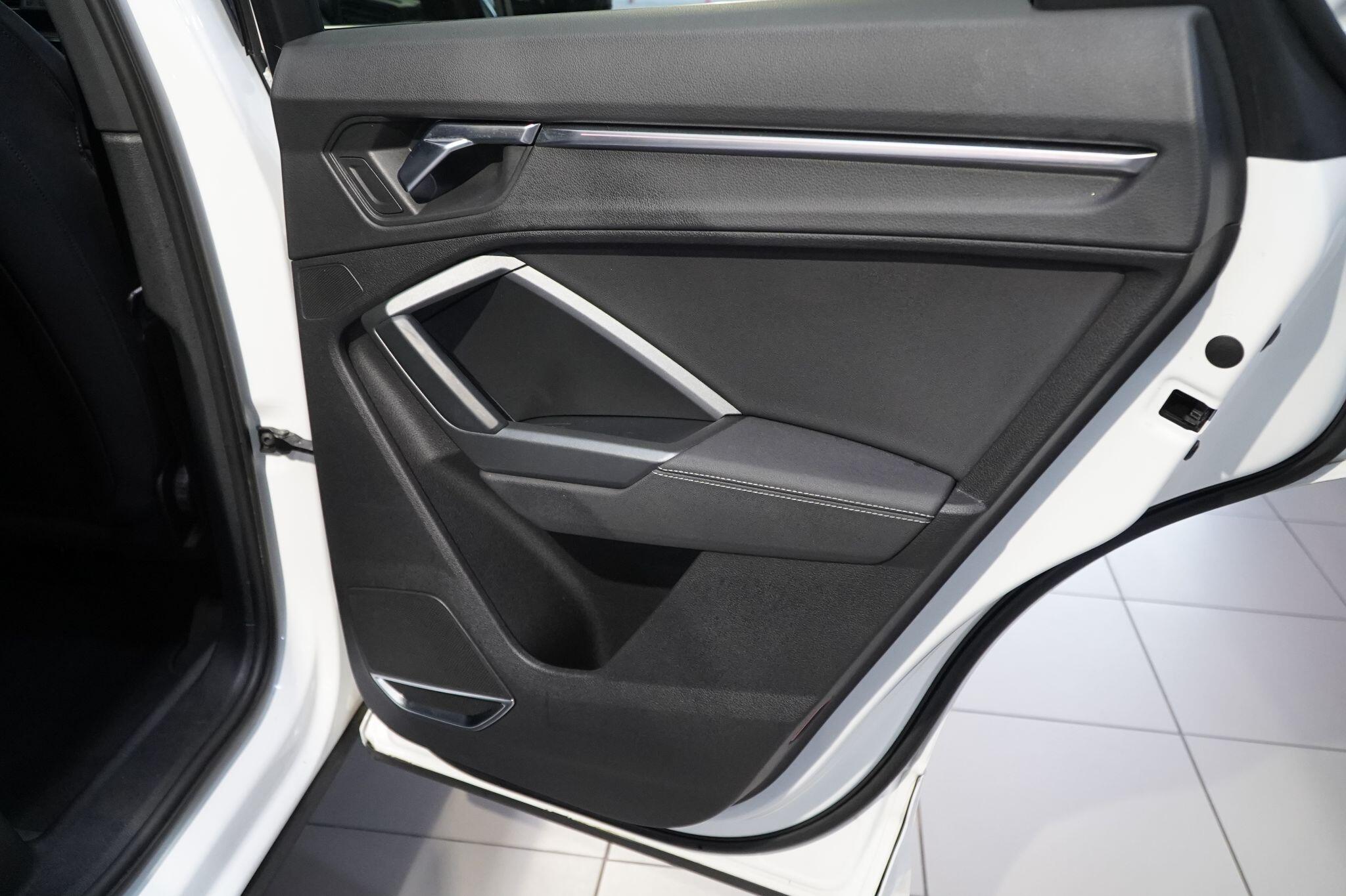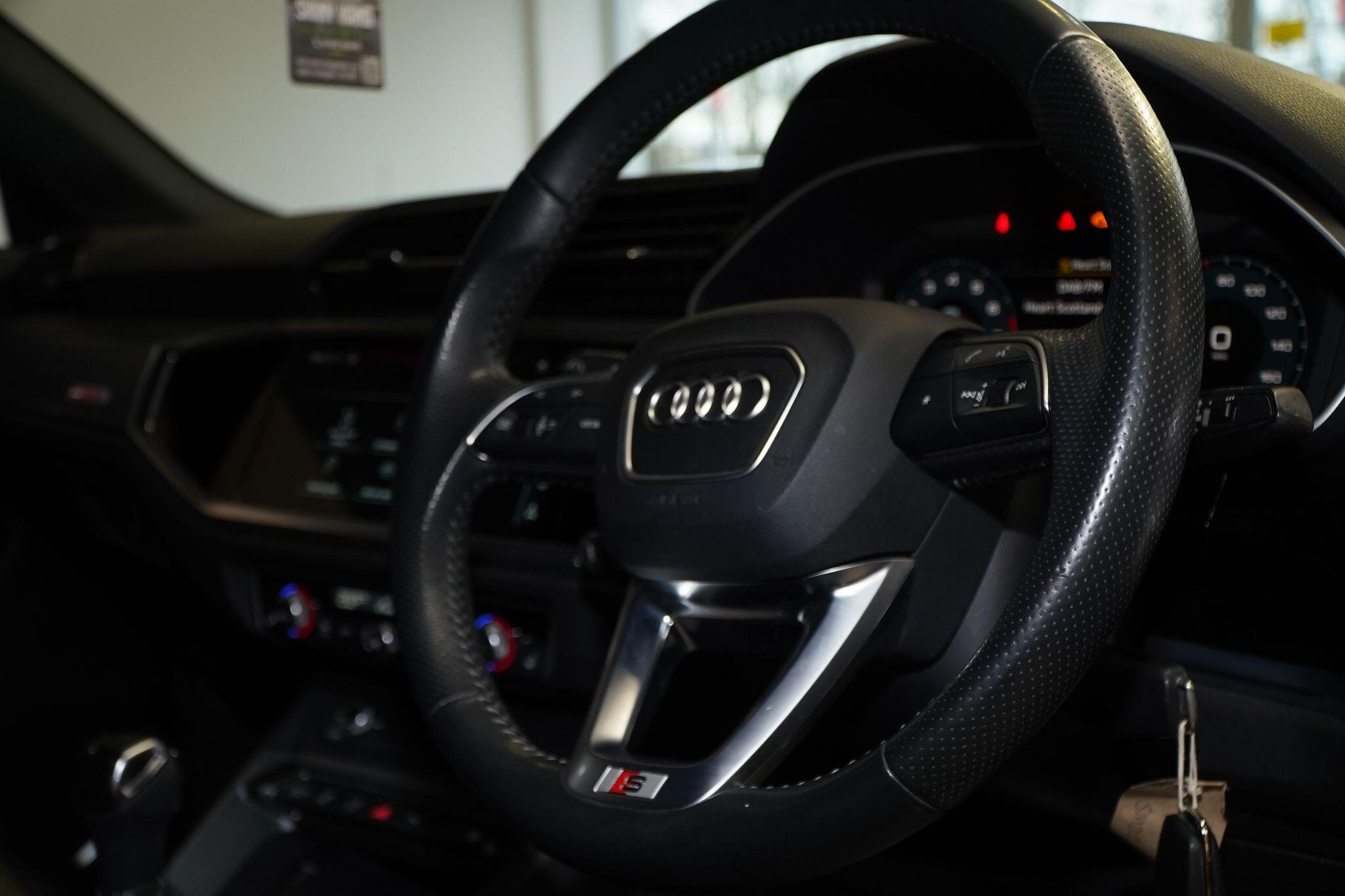 This 2020 Audi Q3 TFSI S line presents itself with remarkably low mileage for its age, having covered just 34,249 miles. This stylish SUV is powered by an efficient 1.5 litre petrol engine, meeting Euro 6 emissions standards. It comes equipped with the desirable S line trim, enhancing its sporty appeal. Safety and convenience are prioritised with Audi Side Assist, which includes Blind Spot Assistance, and a Light and Rain Sensor that automatically activates the headlights.Experience seamless connectivity with the Bluetooth Interface and the Audi Smartphone Interface, featuring wireless Apple CarPlay. The Q3 boasts striking LED headlights with distinctive LED daytime running lights and dynamic rear indicators, ensuring excellent visibility. This particular model accelerates from 0 to 62 miles per hour in a brisk 9.4 seconds, demonstrating a responsive driving experience that sets it apart from many other vehicles in its class.