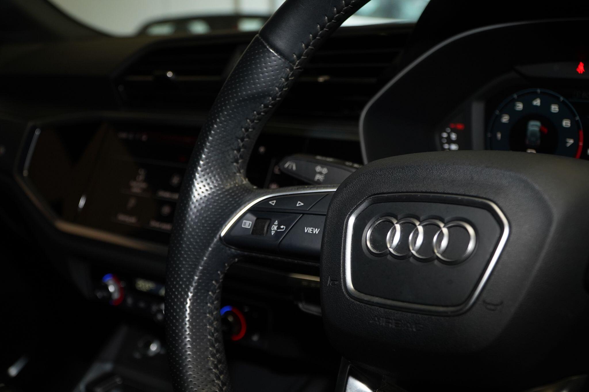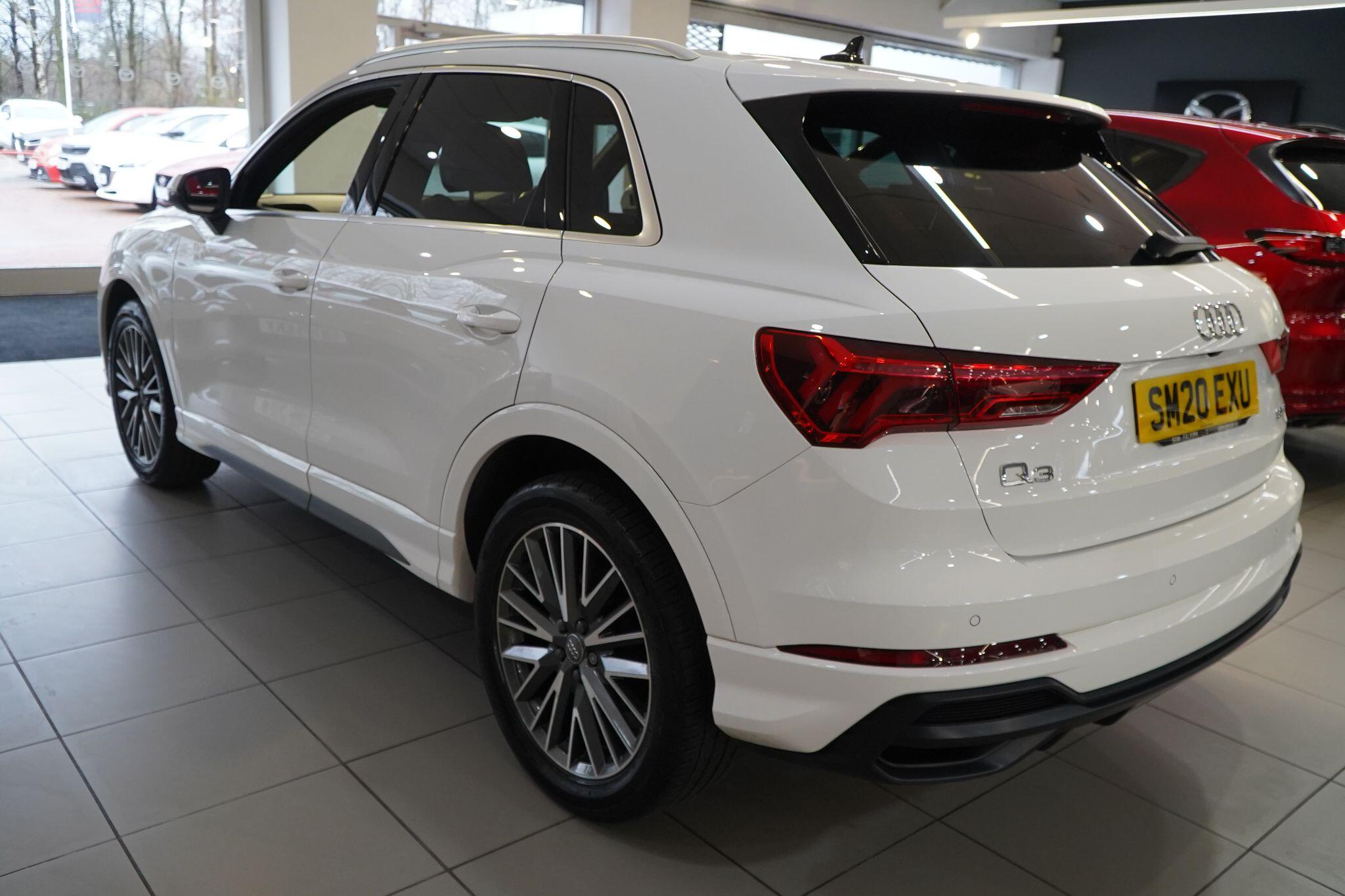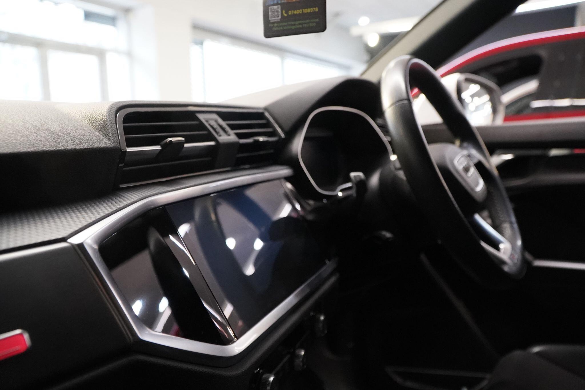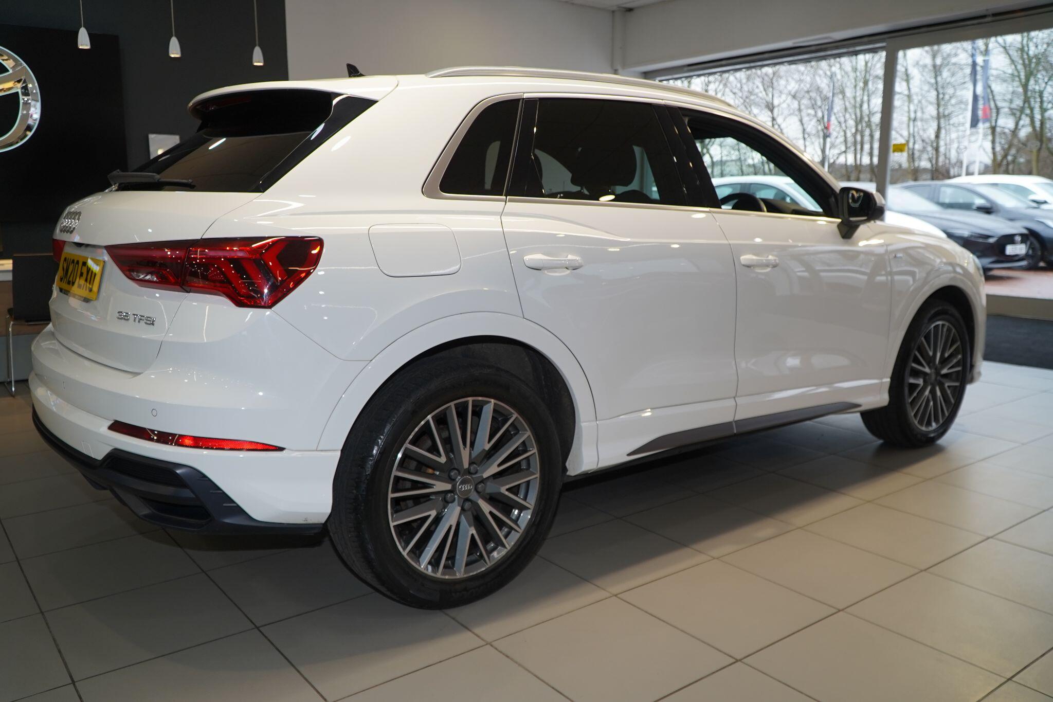 This 2020 Audi Q3 TFSI S line presents itself with remarkably low mileage for its age, having covered just 34,249 miles. This stylish SUV is powered by an efficient 1.5 litre petrol engine, meeting Euro 6 emissions standards. It comes equipped with the desirable S line trim, enhancing its sporty appeal. Safety and convenience are prioritised with Audi Side Assist, which includes Blind Spot Assistance, and a Light and Rain Sensor that automatically activates the headlights.Experience seamless connectivity with the Bluetooth Interface and the Audi Smartphone Interface, featuring wireless Apple CarPlay. The Q3 boasts striking LED headlights with distinctive LED daytime running lights and dynamic rear indicators, ensuring excellent visibility. This particular model accelerates from 0 to 62 miles per hour in a brisk 9.4 seconds, demonstrating a responsive driving experience that sets it apart from many other vehicles in its class.