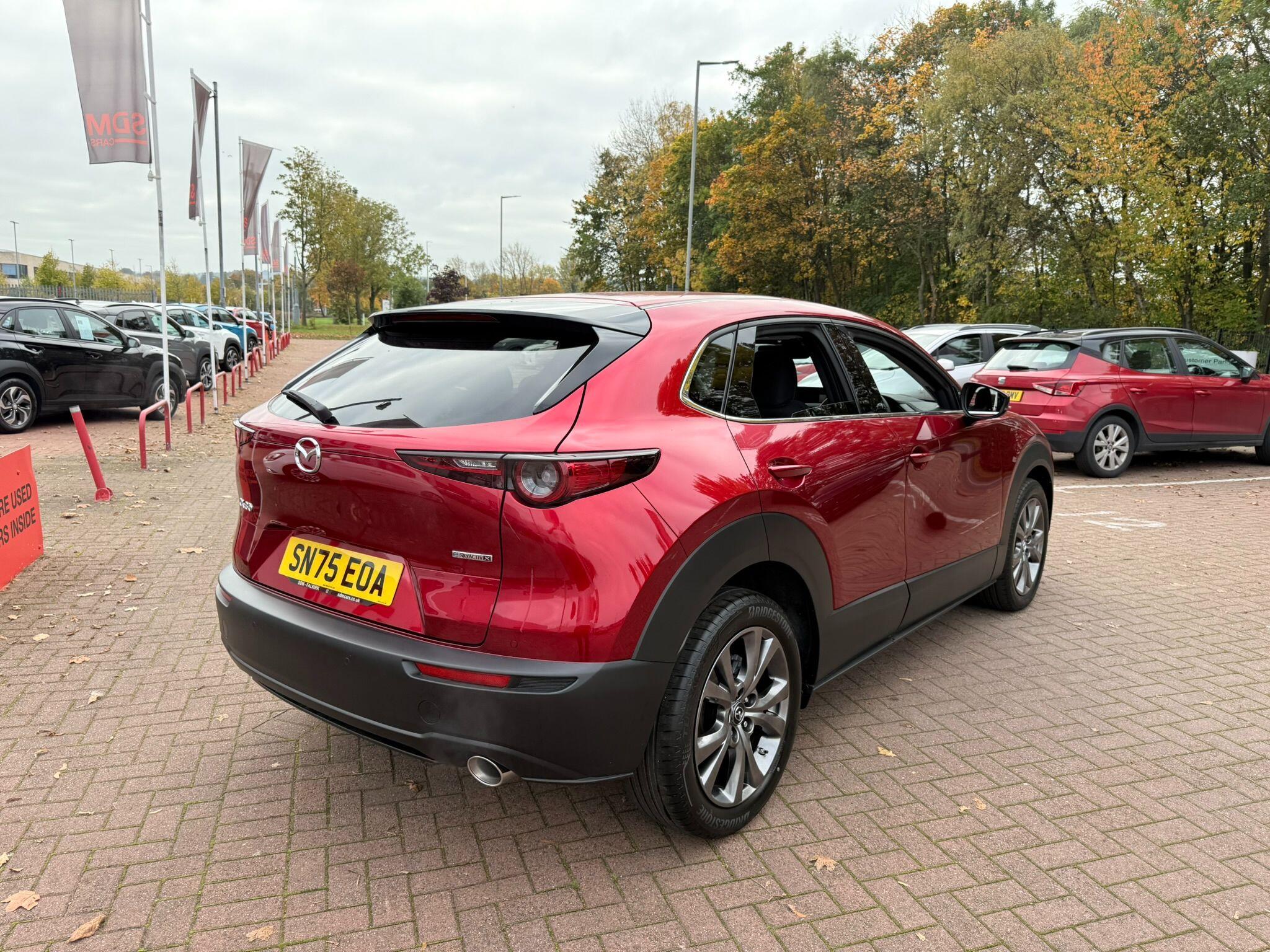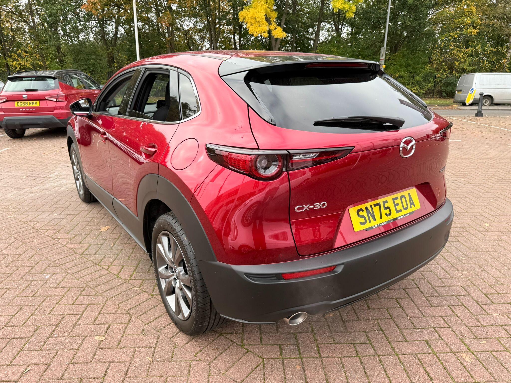 This 2025 Mazda CX-30 e-SKYACTIV X Exclusive-Line is a superb example, having had only one owner since new. This stylish SUV features a responsive 2.0L petrol engine and meets Euro 6 emissions standards. Inside, you'll find a premium experience with a Head Up Display, LED headlights that automatically adjust their level, and dual zone climate control complete with rear air vents for passenger comfort. The Exclusive-Line trim also boasts a power tilt and slide sunroof, perfect for enjoying the open air, and smart keyless entry for effortless access.The Mazda CX-30 e-SKYACTIV X Exclusive-Line offers an impressive fuel economy of 49 mpg, demonstrating its efficiency compared to other vehicles in its class. Its low CO2 emissions further highlight its environmentally conscious design. For those who appreciate performance, it accelerates from 0-62mph in a brisk 8.3 seconds, providing a dynamic driving experience. These combined attributes make this CX-30 a compelling choice for discerning drivers.