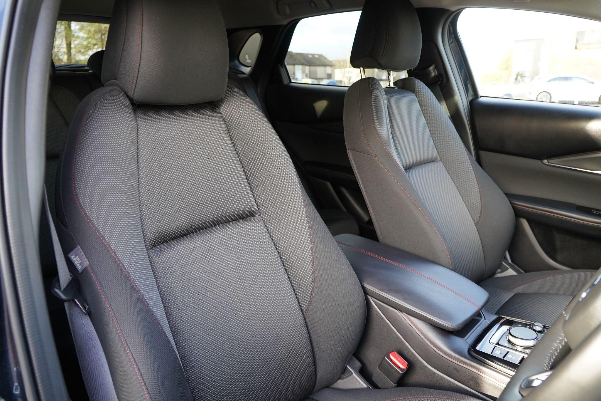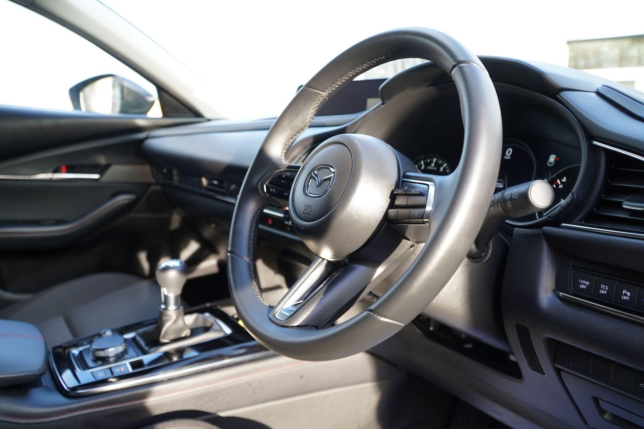 This 2024 Mazda CX-30 e-SKYACTIV G Homura presents an exceptional ownership proposition with its remarkably low mileage of just 7169 miles. As a single owner vehicle, this CX-30 combines the sophisticated styling of the Homura trim with a powerful yet efficient 2.5L petrol engine, meeting Euro 6 emission standards. Inside, you'll find comfort and convenience with heated front seats offering three stage settings, alongside seamless connectivity through wireless Apple CarPlay and wired Android Auto. Driving is made easier and safer with LED headlights featuring auto levelling and front and rear parking sensors, while the blind spot monitoring system with rear cross traffic alert provides an extra layer of awareness.This Mazda CX-30 stands out from similar vehicles due to its impressive fuel economy of 47 mpg, making it an economical choice for your journeys. Furthermore, its low CO2 emissions and placement in a low insurance group highlight its cost effectiveness and accessibility. These factors, combined with its low mileage and single owner history, make this CX-30 a compelling option for those seeking a well maintained and efficient compact SUV.