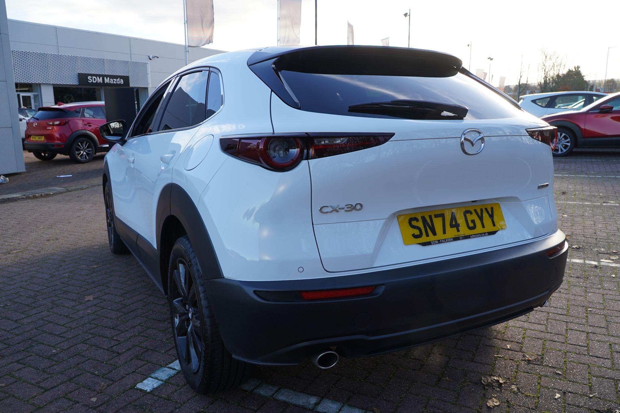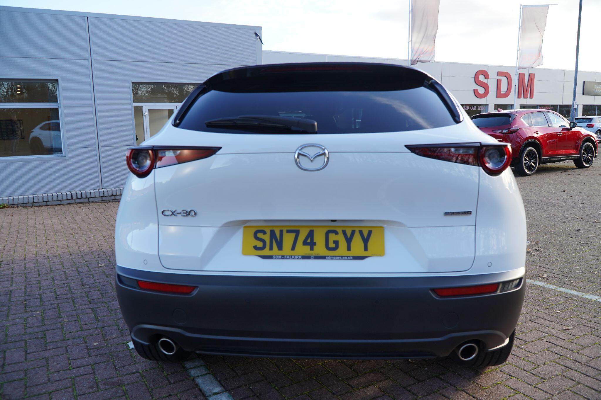 This 2024 Mazda CX-30 e-SKYACTIV G Homura is a superb example, having had only one owner since new. This stylish SUV boasts a responsive 2.5L petrol engine, meeting Euro 6 emissions standards. Inside, you'll find a wealth of technology and comfort, including heated front seats with three stage settings, adaptive cruise control for effortless journeys, and a convenient QI wireless mobile phone charging pad. The advanced head up display keeps essential information in your line of sight, while seamless connectivity is ensured with wireless Apple CarPlay and wired Android Auto.The CX-30 Homura offers a compelling package, highlighted by its impressive 47 mpg fuel economy and low CO2 emissions, demonstrating its efficiency compared to similar vehicles. Furthermore, its placement in a low insurance group makes it an economical choice for many drivers. This well appointed Mazda CX-30 represents a fantastic blend of sophisticated design, advanced technology, and practical usability.