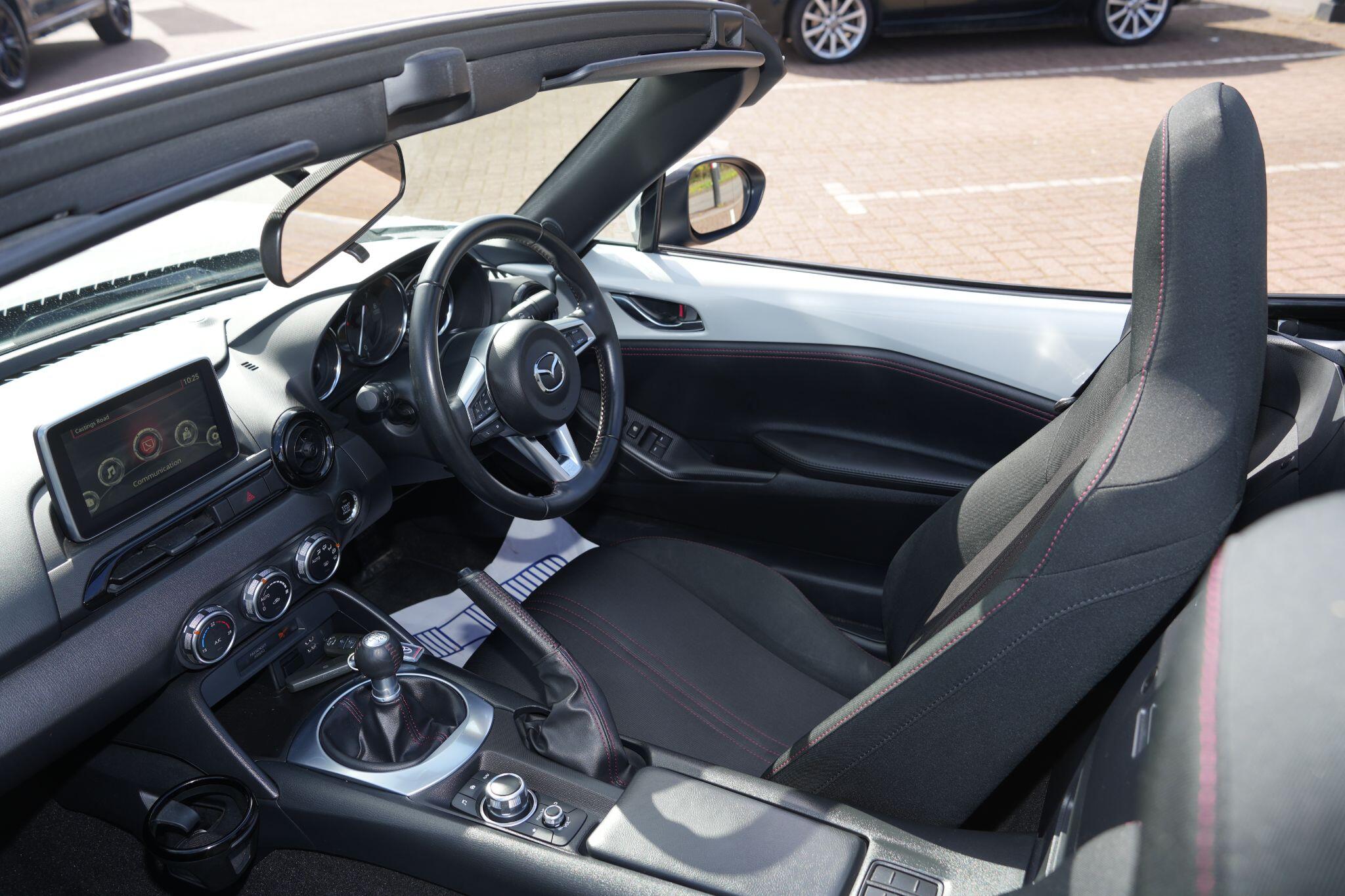 This 2016 Mazda MX-5 SKYACTIV-G SE-L is a truly special find, having been cherished by just one owner from new and boasting remarkably low mileage for its age at only 35,695 miles. This particular model is equipped with a responsive 1.5 litre petrol engine and meets Euro 6 emissions standards. Inside, you'll appreciate the convenience of automatic climate control, integrated Bluetooth for seamless phone connectivity, and Bluetooth audio streaming to enjoy your favourite music on the go. The car also features bright and efficient LED headlights, enhancing both visibility and its modern appearance.The Mazda MX-5 SKYACTIV-G SE-L offers an exceptional driving experience, further enhanced by its impressive fuel economy, achieving a highlight of 47 miles per gallon. This figure, along with its low CO2 emissions, indicates that this vehicle is a more economical and environmentally conscious choice compared to many others in its class. This combination of low ownership, minimal mileage, excellent fuel efficiency, and desirable features makes this MX-5 a standout option for any discerning driver.