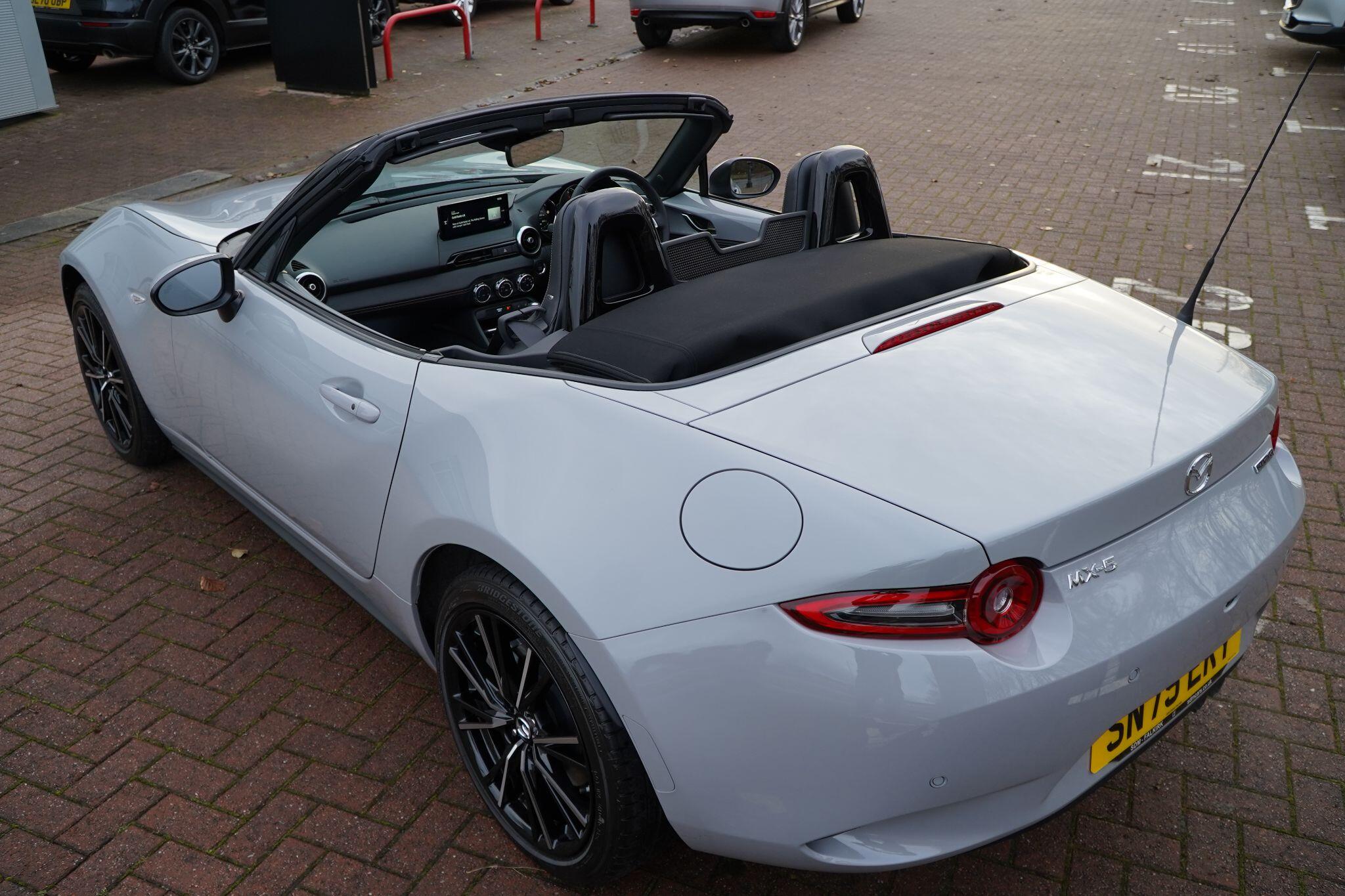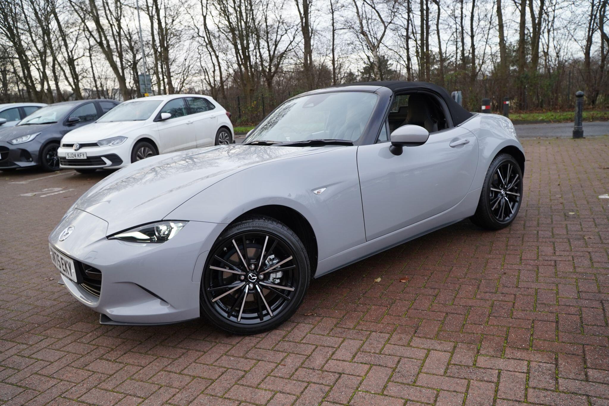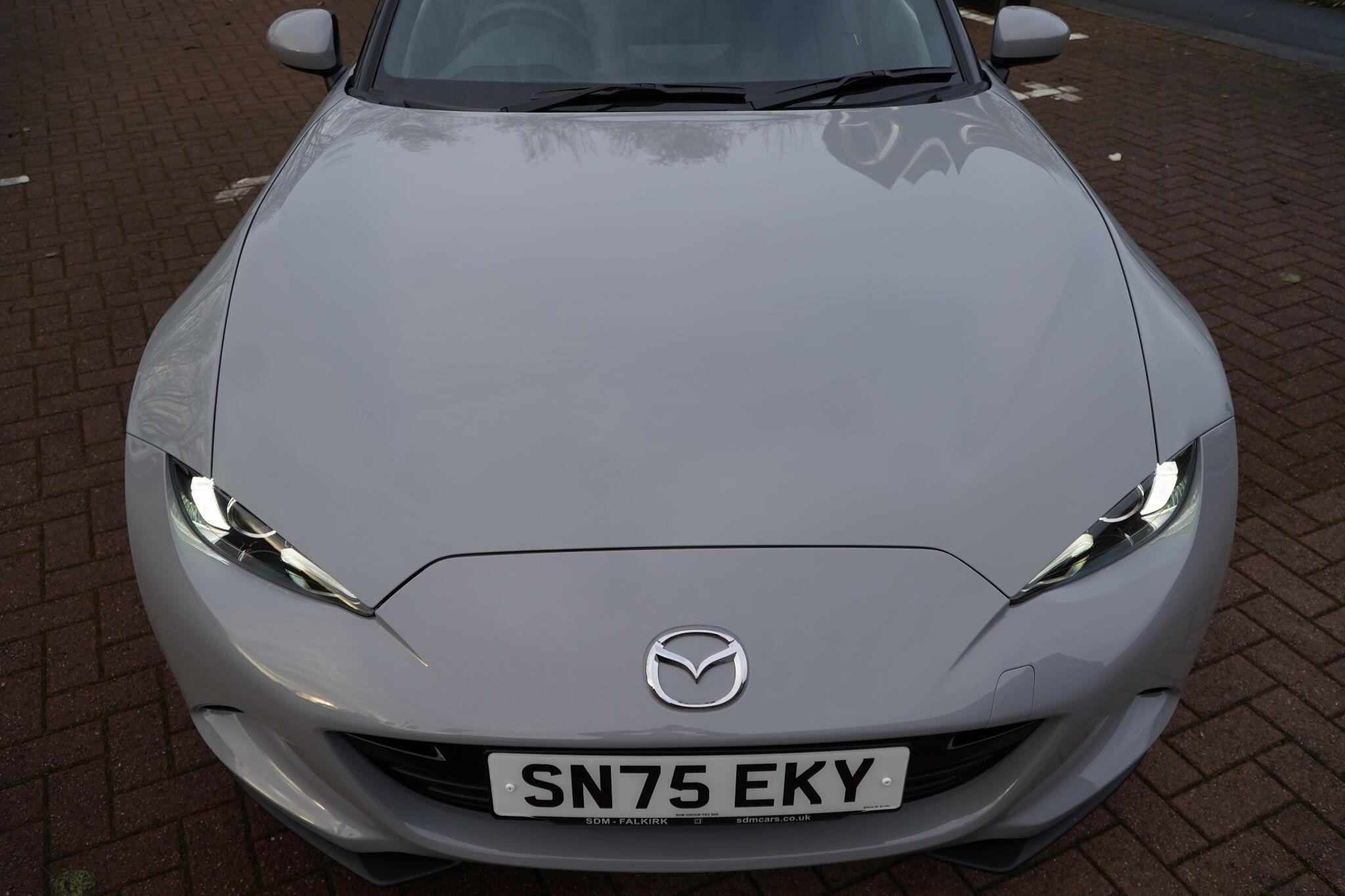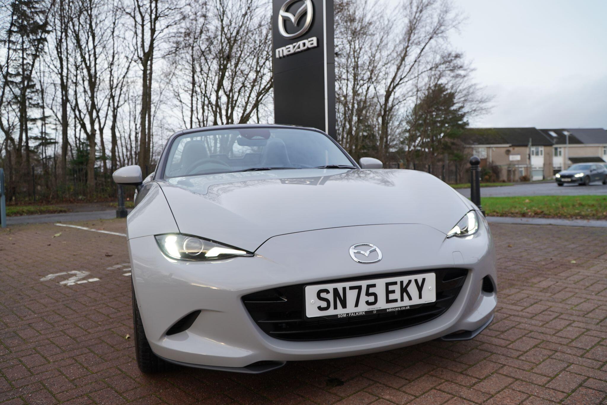 Discover this exceptional 2025 Mazda MX-5 SKYACTIV-G Exclusive-Line, boasting an incredibly low mileage of just 769 miles, making it practically new. This single owner vehicle, finished in the desirable Exclusive Line trim, is powered by a responsive 2.0L petrol engine and meets Euro 6 emission standards. You'll appreciate the convenience of a reversing camera with rear parking assistance and rear parking sensors, while the adaptive LED headlights ensure optimal visibility. Inside, enjoy year round comfort with three stage seat heaters and climate control air conditioning.Experience exhilarating performance with this Mazda MX-5, capable of accelerating from 0-62mph in a swift 6.5 seconds. Its impressive fuel economy of 42 mpg and low CO2 emissions highlight its efficiency, making it a sensible choice for both spirited drives and everyday journeys. These figures demonstrate how this particular MX-5 offers a superior blend of performance and economy compared to many other vehicles in its class.