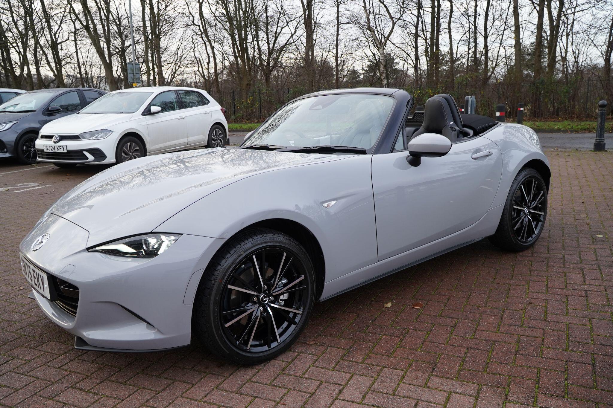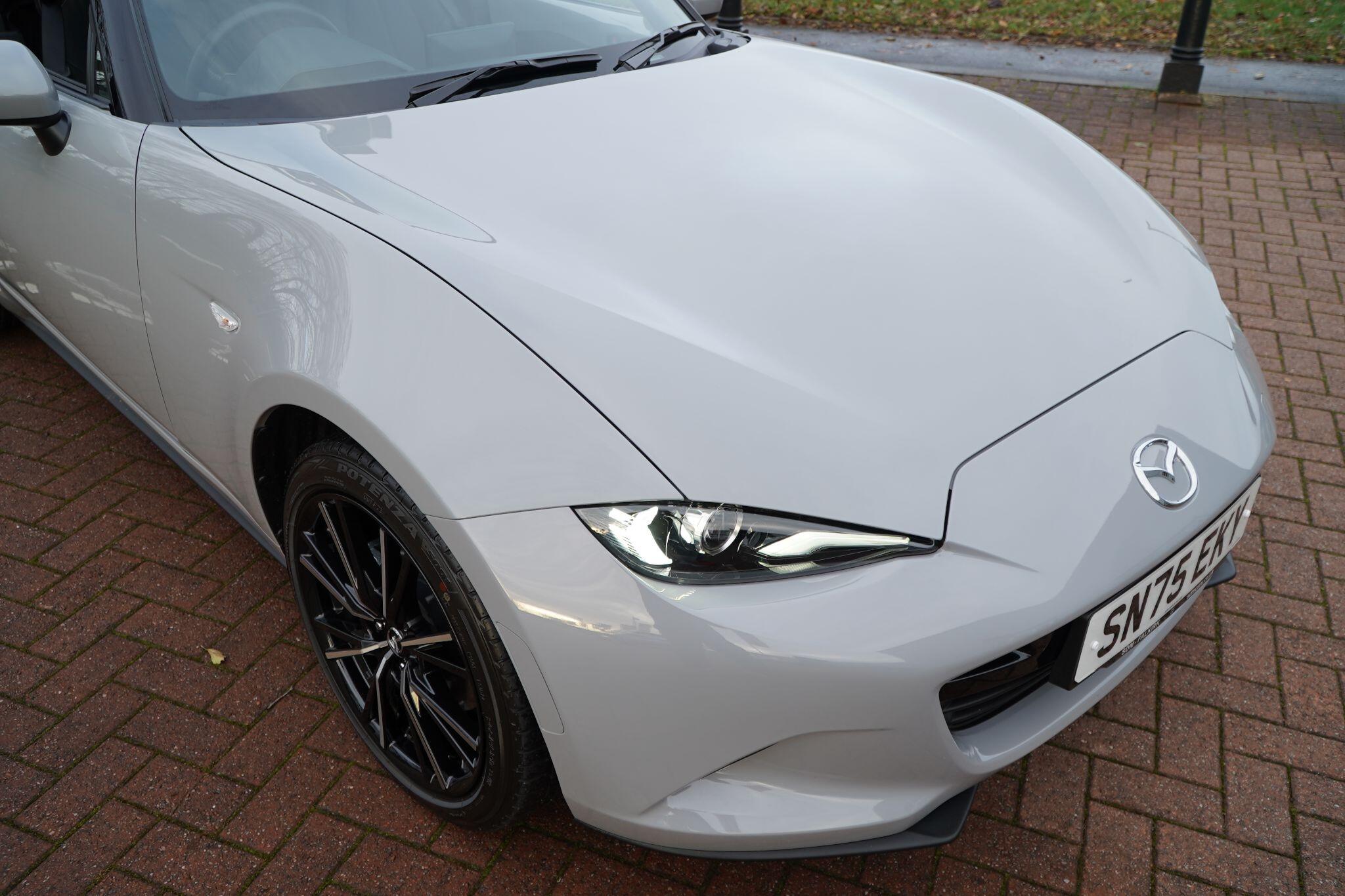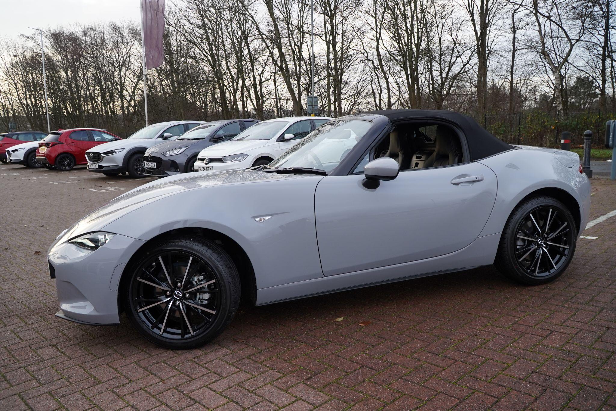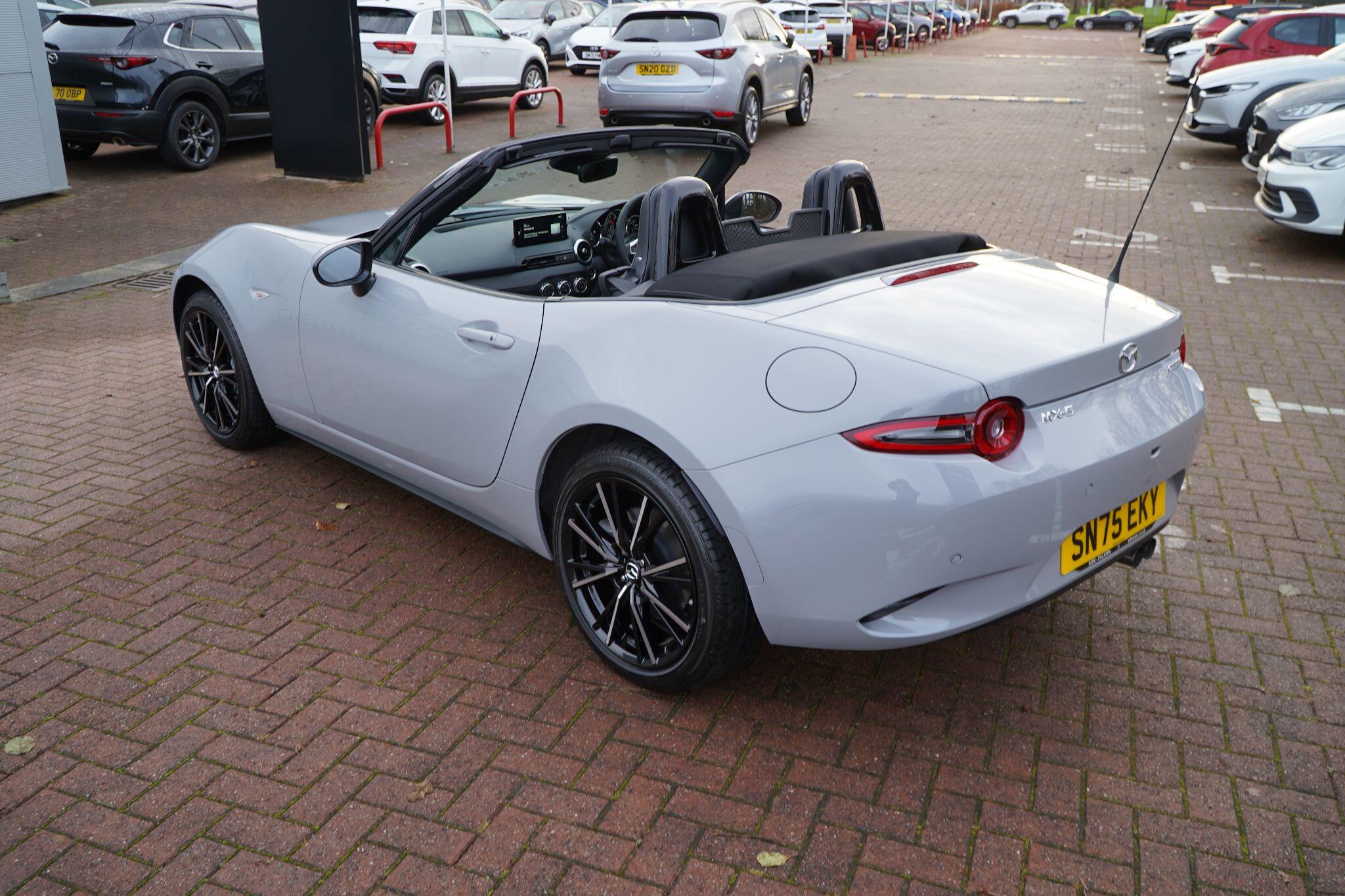 Discover this exceptional 2025 Mazda MX-5 SKYACTIV-G Exclusive-Line, boasting an incredibly low mileage of just 769 miles, making it practically new. This single owner vehicle, finished in the desirable Exclusive Line trim, is powered by a responsive 2.0L petrol engine and meets Euro 6 emission standards. You'll appreciate the convenience of a reversing camera with rear parking assistance and rear parking sensors, while the adaptive LED headlights ensure optimal visibility. Inside, enjoy year round comfort with three stage seat heaters and climate control air conditioning.Experience exhilarating performance with this Mazda MX-5, capable of accelerating from 0-62mph in a swift 6.5 seconds. Its impressive fuel economy of 42 mpg and low CO2 emissions highlight its efficiency, making it a sensible choice for both spirited drives and everyday journeys. These figures demonstrate how this particular MX-5 offers a superior blend of performance and economy compared to many other vehicles in its class.