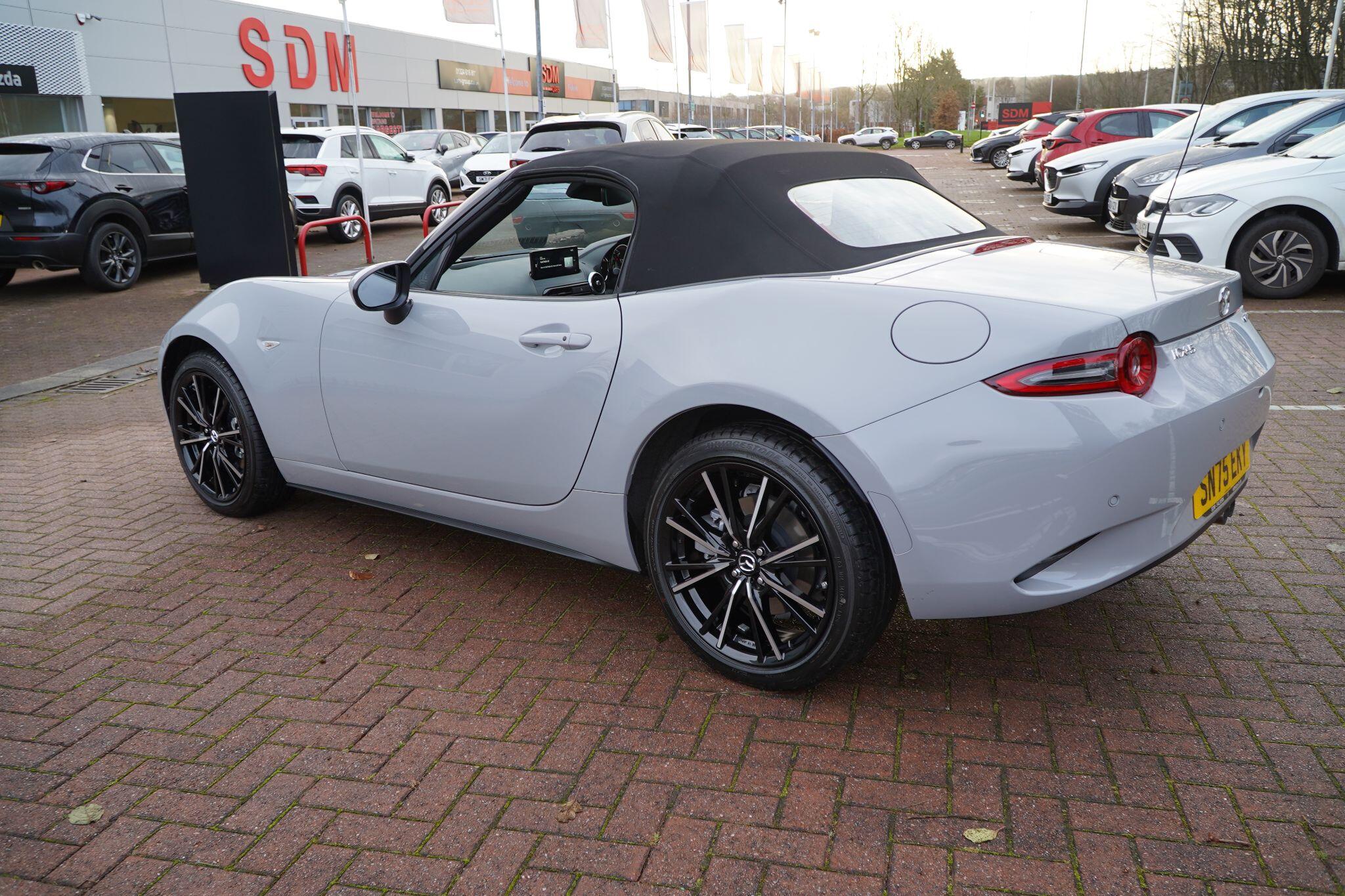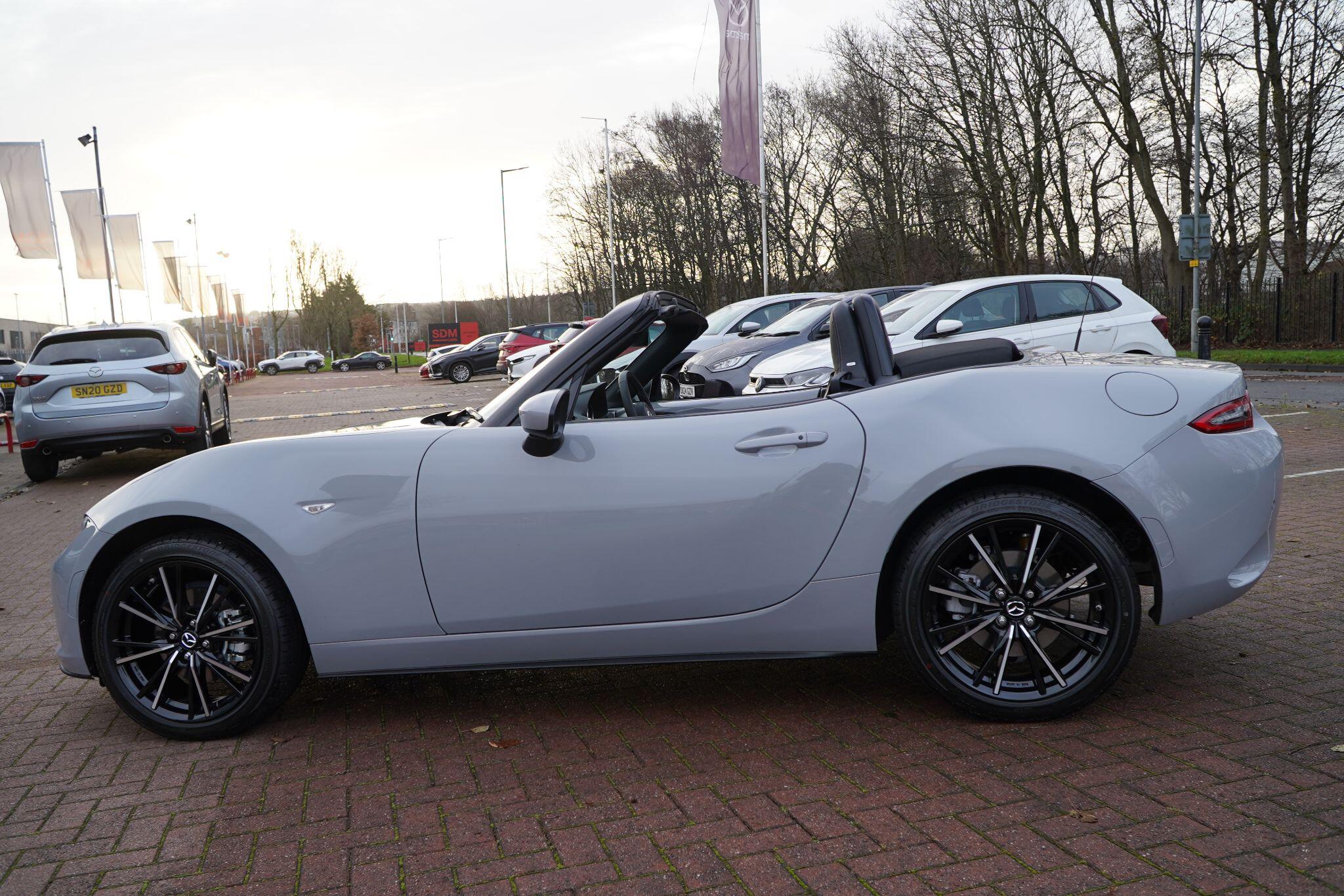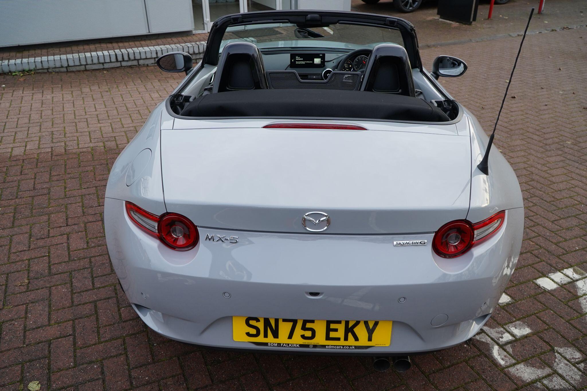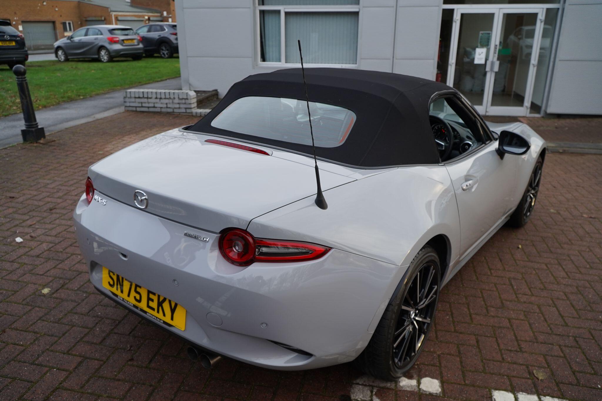 Discover this exceptional 2025 Mazda MX-5 SKYACTIV-G Exclusive-Line, boasting an incredibly low mileage of just 769 miles, making it practically new. This single owner vehicle, finished in the desirable Exclusive Line trim, is powered by a responsive 2.0L petrol engine and meets Euro 6 emission standards. You'll appreciate the convenience of a reversing camera with rear parking assistance and rear parking sensors, while the adaptive LED headlights ensure optimal visibility. Inside, enjoy year round comfort with three stage seat heaters and climate control air conditioning.Experience exhilarating performance with this Mazda MX-5, capable of accelerating from 0-62mph in a swift 6.5 seconds. Its impressive fuel economy of 42 mpg and low CO2 emissions highlight its efficiency, making it a sensible choice for both spirited drives and everyday journeys. These figures demonstrate how this particular MX-5 offers a superior blend of performance and economy compared to many other vehicles in its class.
