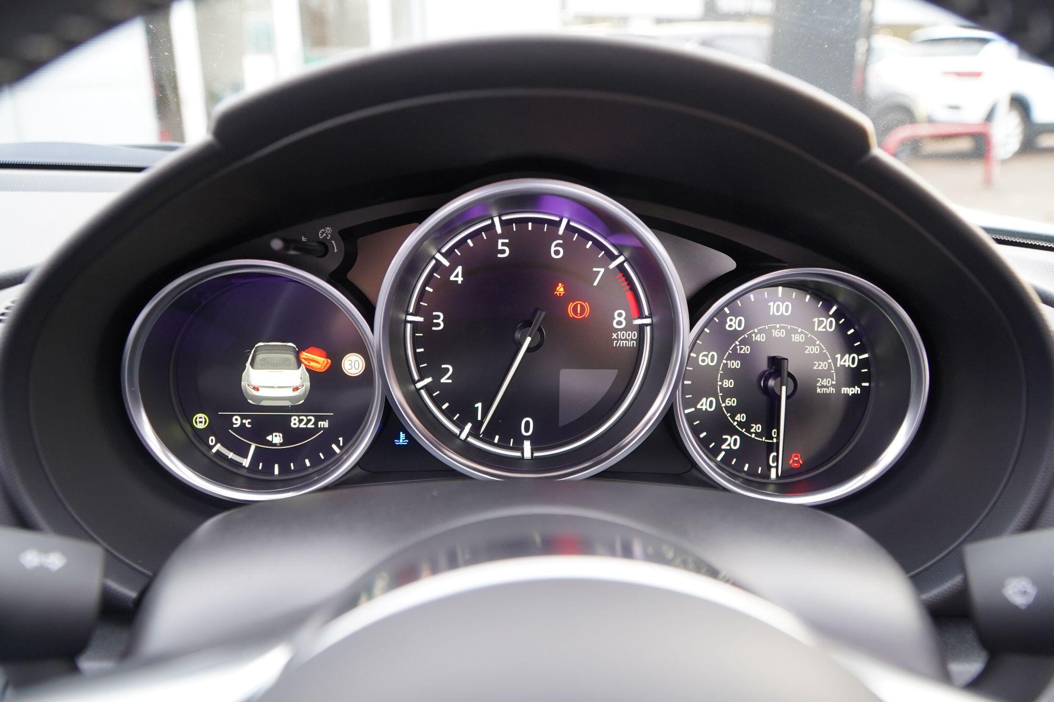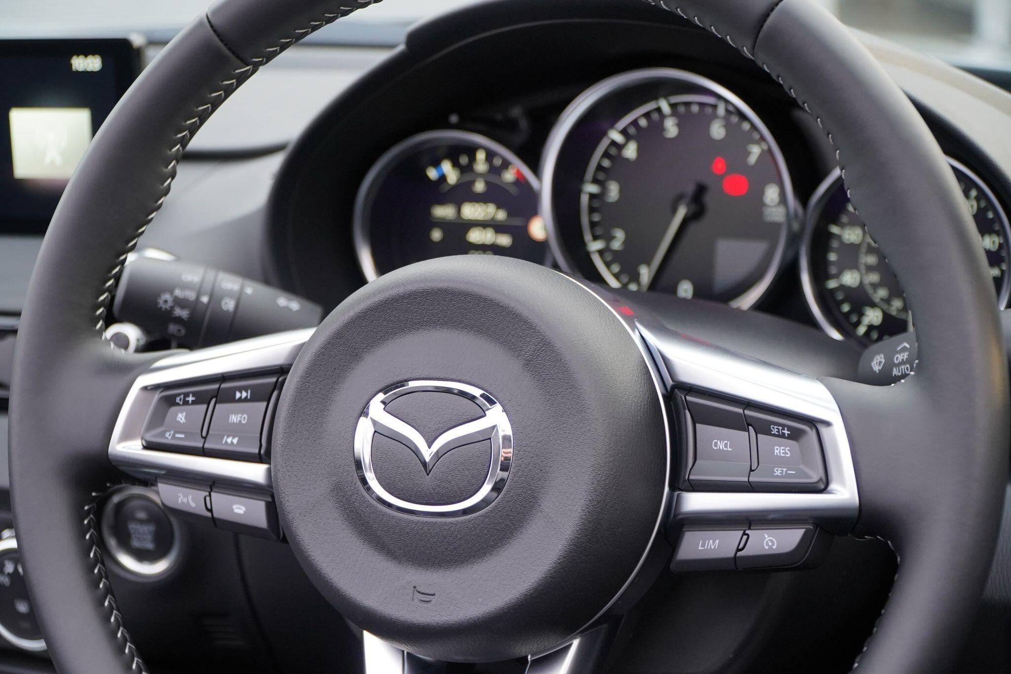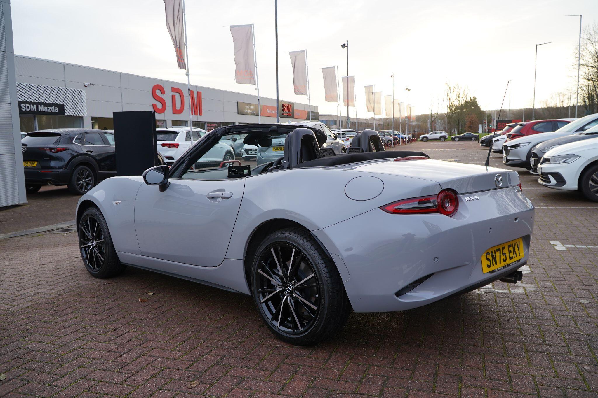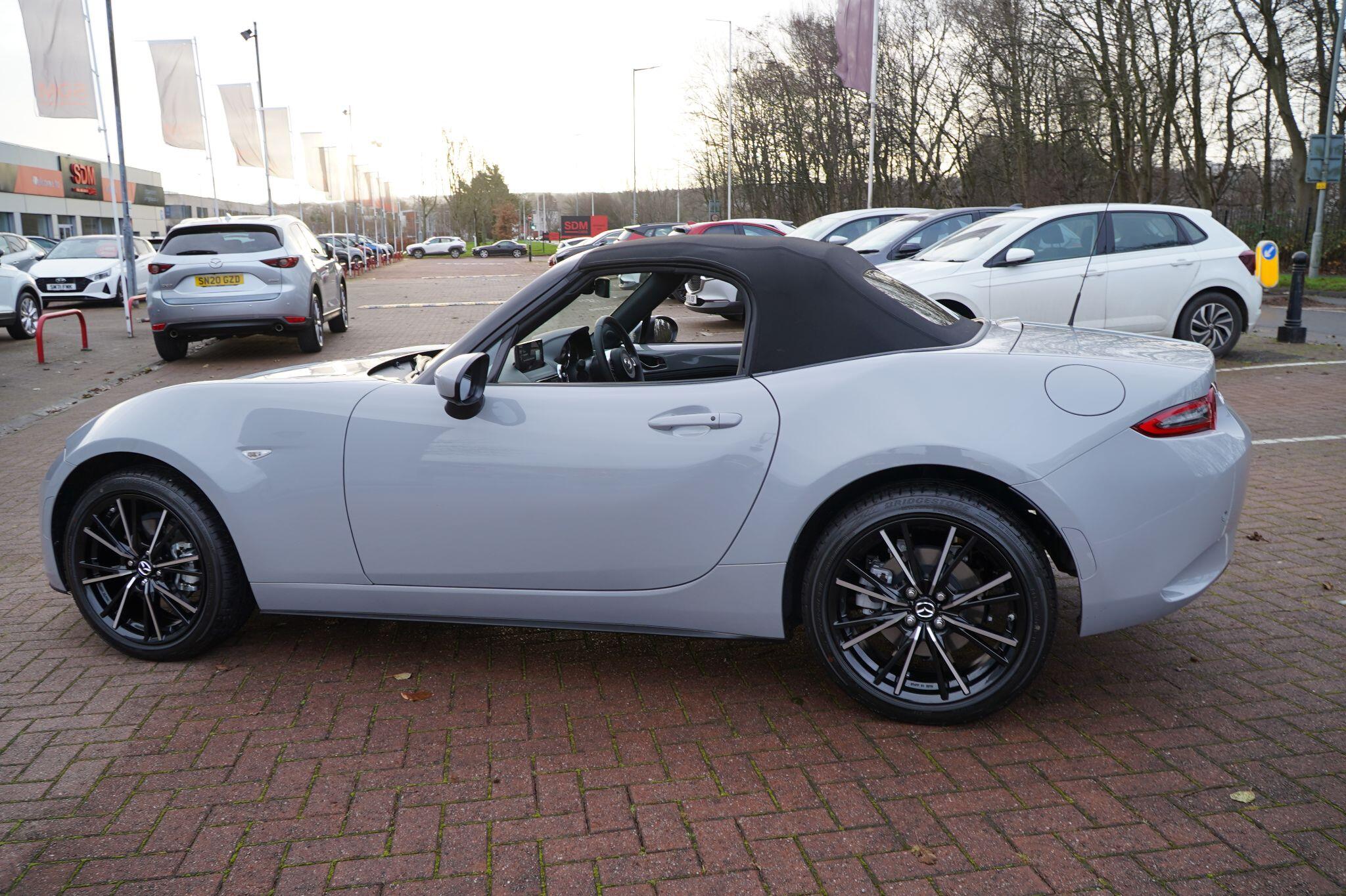 Discover this exceptional 2025 Mazda MX-5 SKYACTIV-G Exclusive-Line, boasting an incredibly low mileage of just 769 miles, making it practically new. This single owner vehicle, finished in the desirable Exclusive Line trim, is powered by a responsive 2.0L petrol engine and meets Euro 6 emission standards. You'll appreciate the convenience of a reversing camera with rear parking assistance and rear parking sensors, while the adaptive LED headlights ensure optimal visibility. Inside, enjoy year round comfort with three stage seat heaters and climate control air conditioning.Experience exhilarating performance with this Mazda MX-5, capable of accelerating from 0-62mph in a swift 6.5 seconds. Its impressive fuel economy of 42 mpg and low CO2 emissions highlight its efficiency, making it a sensible choice for both spirited drives and everyday journeys. These figures demonstrate how this particular MX-5 offers a superior blend of performance and economy compared to many other vehicles in its class.