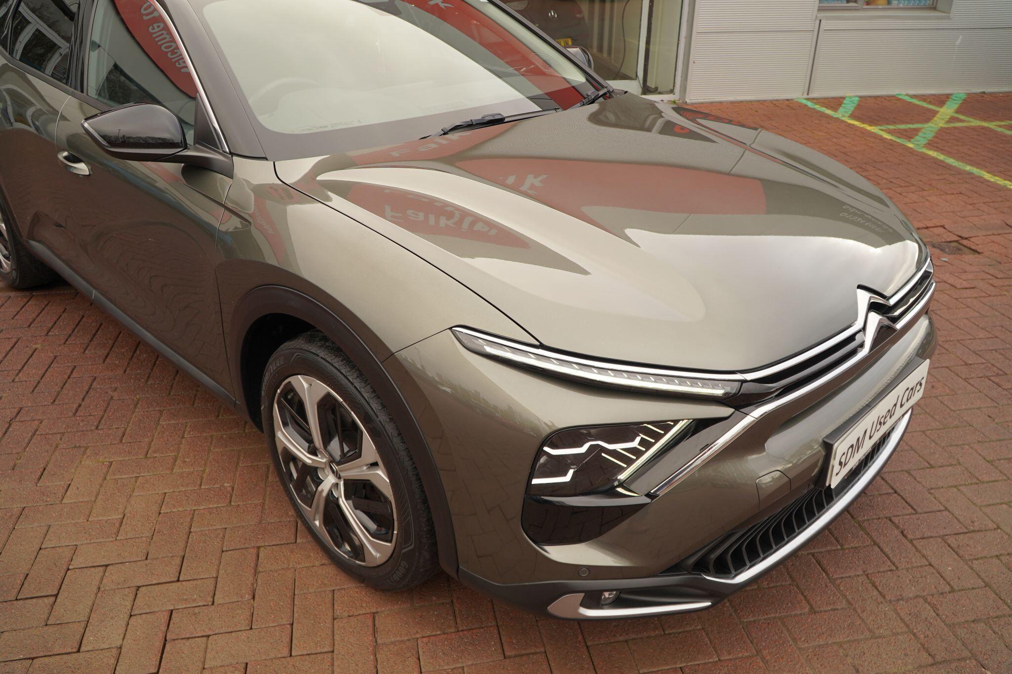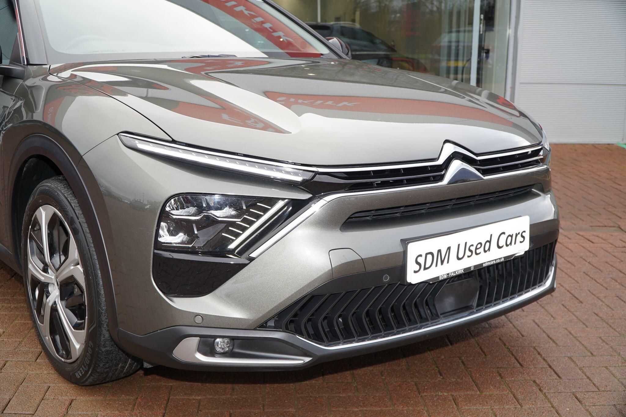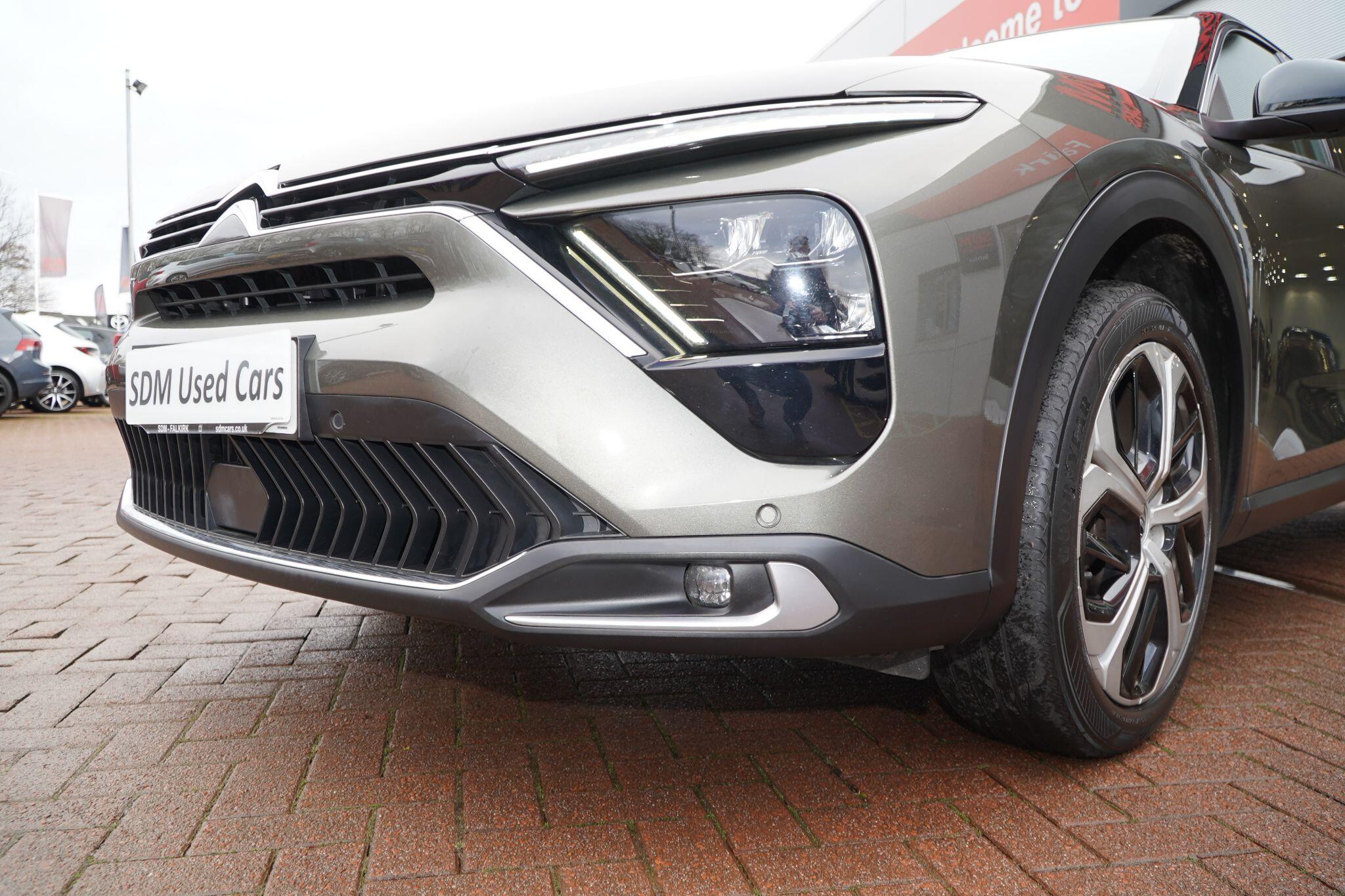 This 2024 Citroen C5 X Sense Plus is a superb example, having had only one owner since new. This stylish vehicle is powered by an efficient 1.2 litre petrol engine, meeting Euro 6 emission standards. It comes equipped with a suite of advanced features designed for convenience and safety, including front and rear parking sensors, a reversing camera with top rear vision and wash function, and automatically illuminating LED headlamps with automatic high beam assist. Inside, you'll find the My Citroen Drive Plus system with Bluetooth connectivity, proximity keyless entry for doors, boot, and fuel filler flap, along with push button start, and automatic dual zone air conditioning for a comfortable cabin environment.The C5 X Sense Plus offers a generous boot space, making it ideal for all your carrying needs. Its performance is equally impressive, achieving 0 to 62 miles per hour in just 10.4 seconds, demonstrating a responsive driving experience. These highlights, such as the comprehensive parking assistance, advanced lighting, and keyless entry, position this C5 X Sense Plus as a well appointed and practical choice within its class.