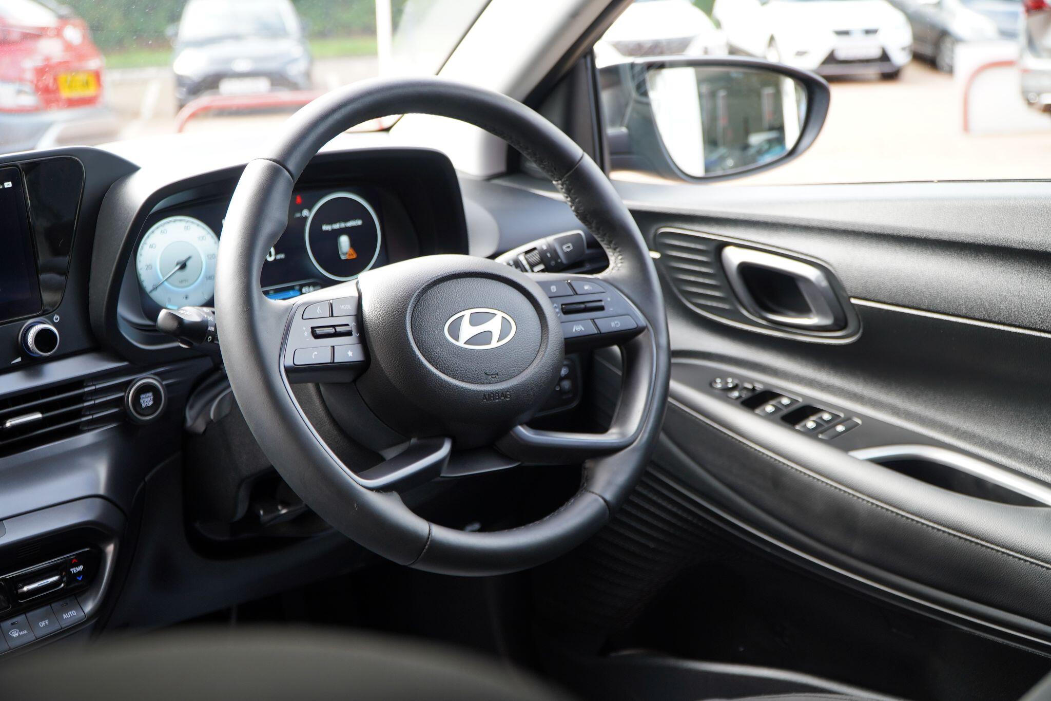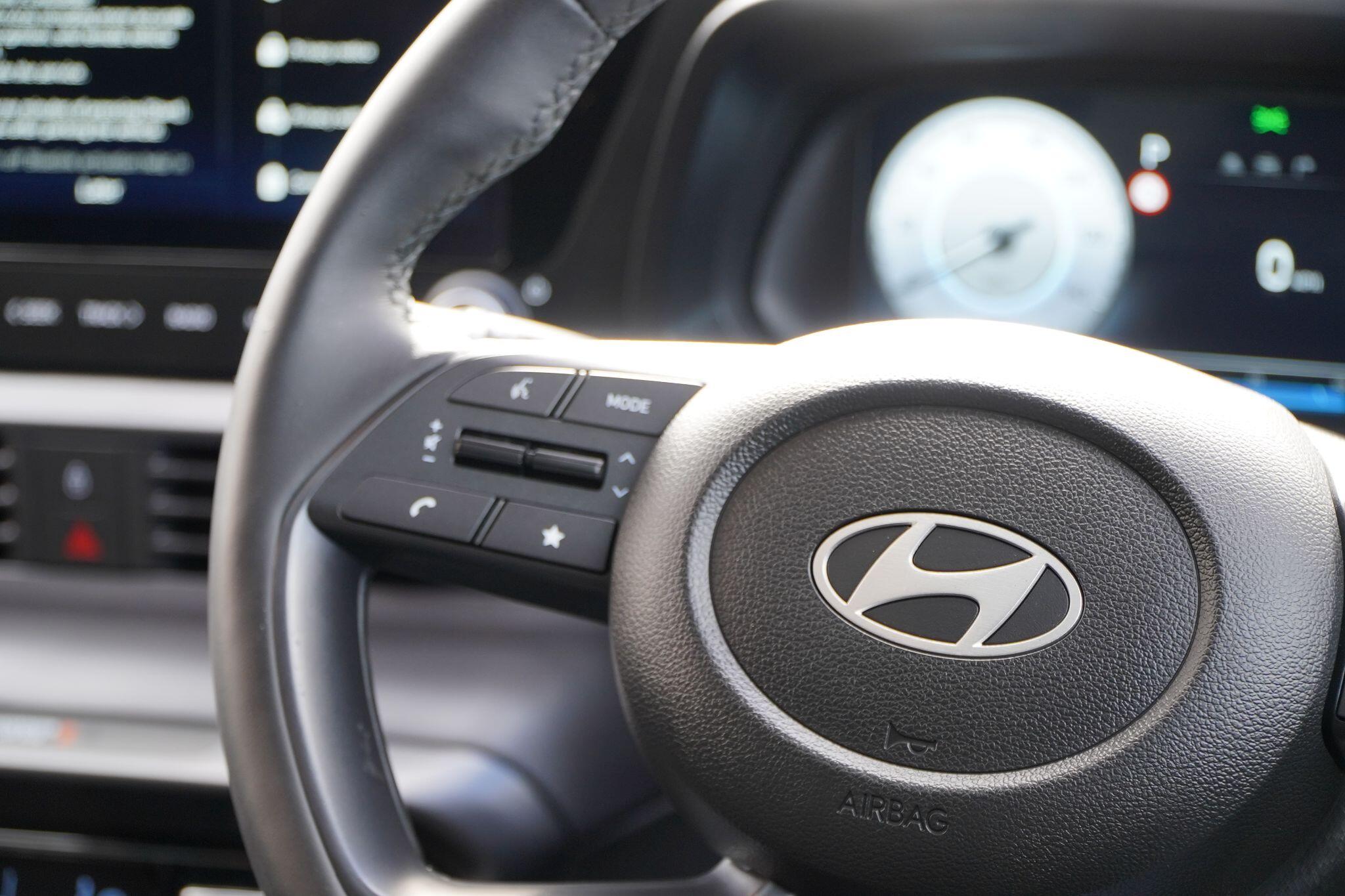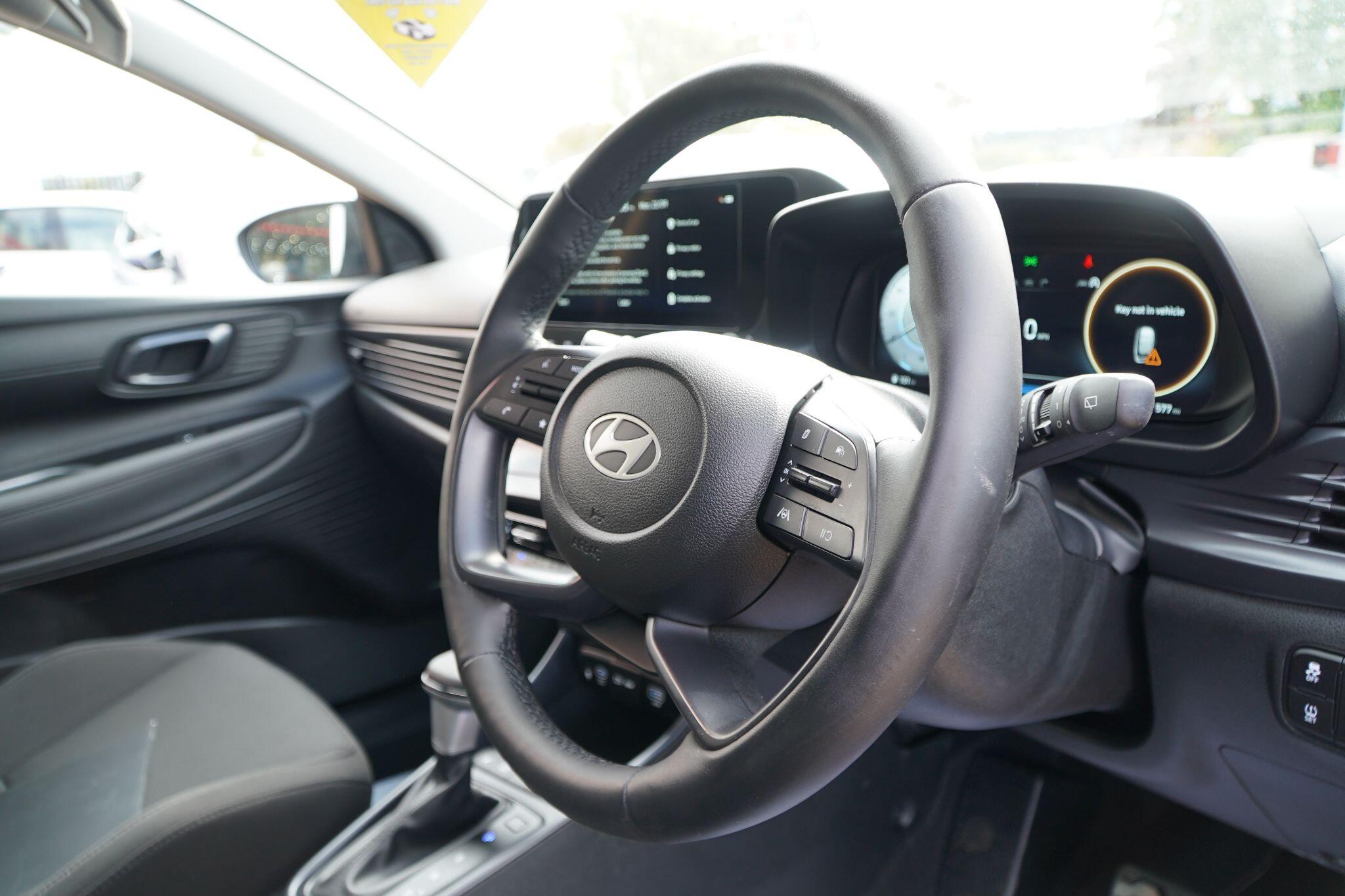 This 2025 Hyundai BAYON T-GDi Ultimate presents an exceptional ownership proposition with an incredibly low mileage of just 1000 miles, making it virtually as new. This stylish hatchback is powered by an efficient 1.0L petrol engine, meeting Euro 6 emission standards. As the sole owner, you'll benefit from a host of premium features designed for comfort and safety, including Blind Spot Collision Warning with Blind Spot Assistance, a Heated Steering Wheel, and a sophisticated BOSE Premium Audio system with 7 speakers and a subwoofer. Navigating your journeys is made effortless with the 10.25in touchscreen satellite navigation, complete with Mapcare and LIVE services, plus seamless integration for Android Auto and Apple CarPlay. Automatic headlights with a dusk sensor ensure optimal visibility in all conditions.The Hyundai BAYON T-GDi Ultimate stands out with its impressive fuel economy, achieving a remarkable 51 miles per gallon, and its low CO2 emissions, indicating a more environmentally conscious and cost effective driving experience compared to many other vehicles in its class. This combination of advanced technology, comfort enhancing features, and outstanding efficiency makes this nearly new BAYON a truly compelling choice for discerning drivers.