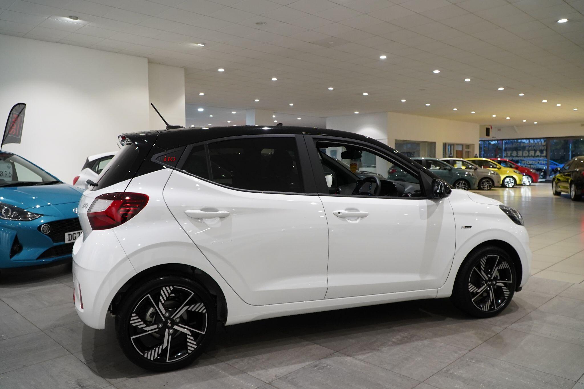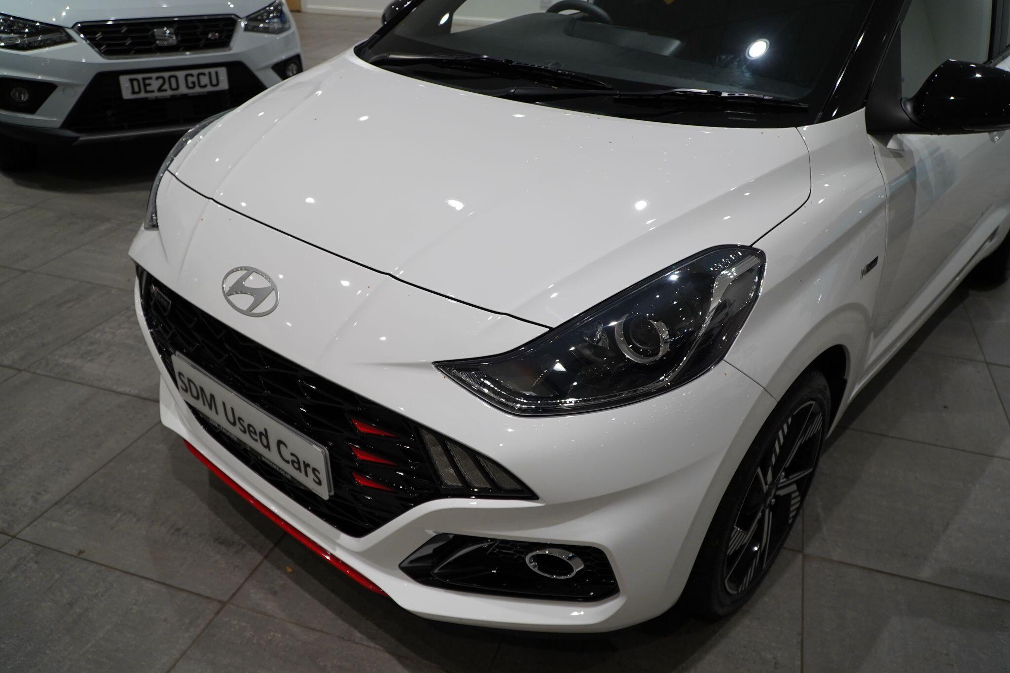 This 2025 Hyundai i10 T-GDi N Line presents an exceptional opportunity with an incredibly low mileage of just 322 miles, indicating it has barely been used since its registration. This one owner vehicle boasts a 1.0L petrol engine, meeting Euro 6 emission standards and contributing to its low CO2 emissions. The N Line trim enhances its appeal, and you'll find convenience features like a rear view parking camera with rear parking sensors, heated front seats for added comfort, and a wireless charger for your phone. Enjoy seamless connectivity with wireless Apple CarPlay, making every journey more enjoyable.The Hyundai i10 T-GDi N Line stands out due to its combination of sporty N Line styling and practical features. The low CO2 emissions highlight its efficiency, making it a sensible choice for many drivers. The inclusion of a rear view parking camera and rear parking sensors simplifies manoeuvring in tight spaces, while heated front seats ensure comfort during colder months. Furthermore, the wireless phone charger and wireless Apple CarPlay offer modern convenience, setting this particular i10 apart from others you might consider.
