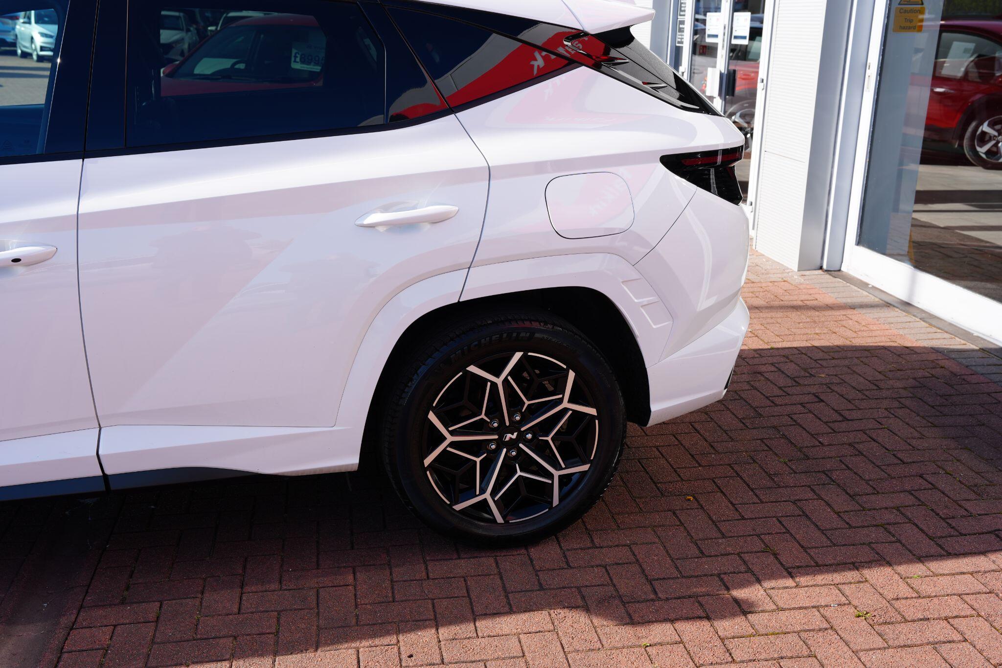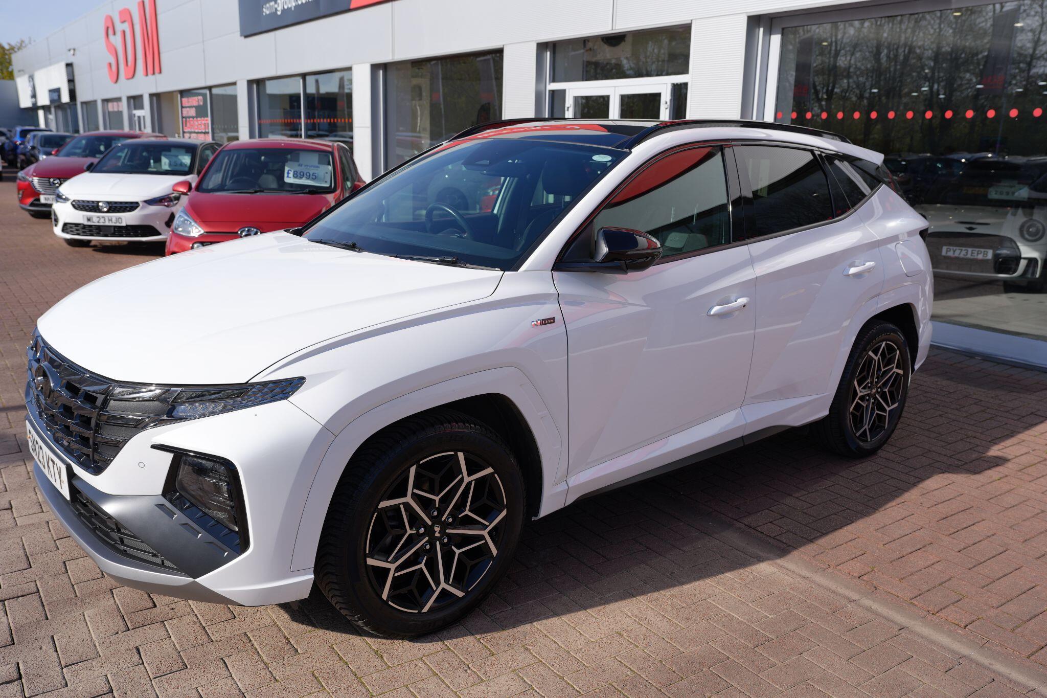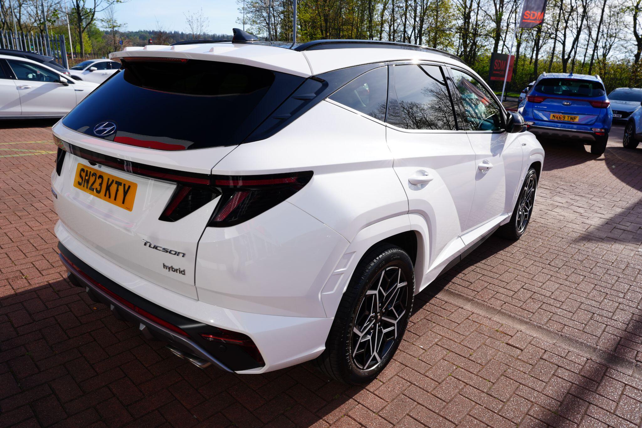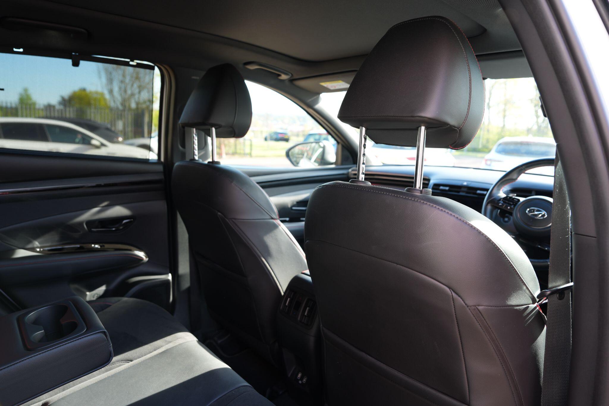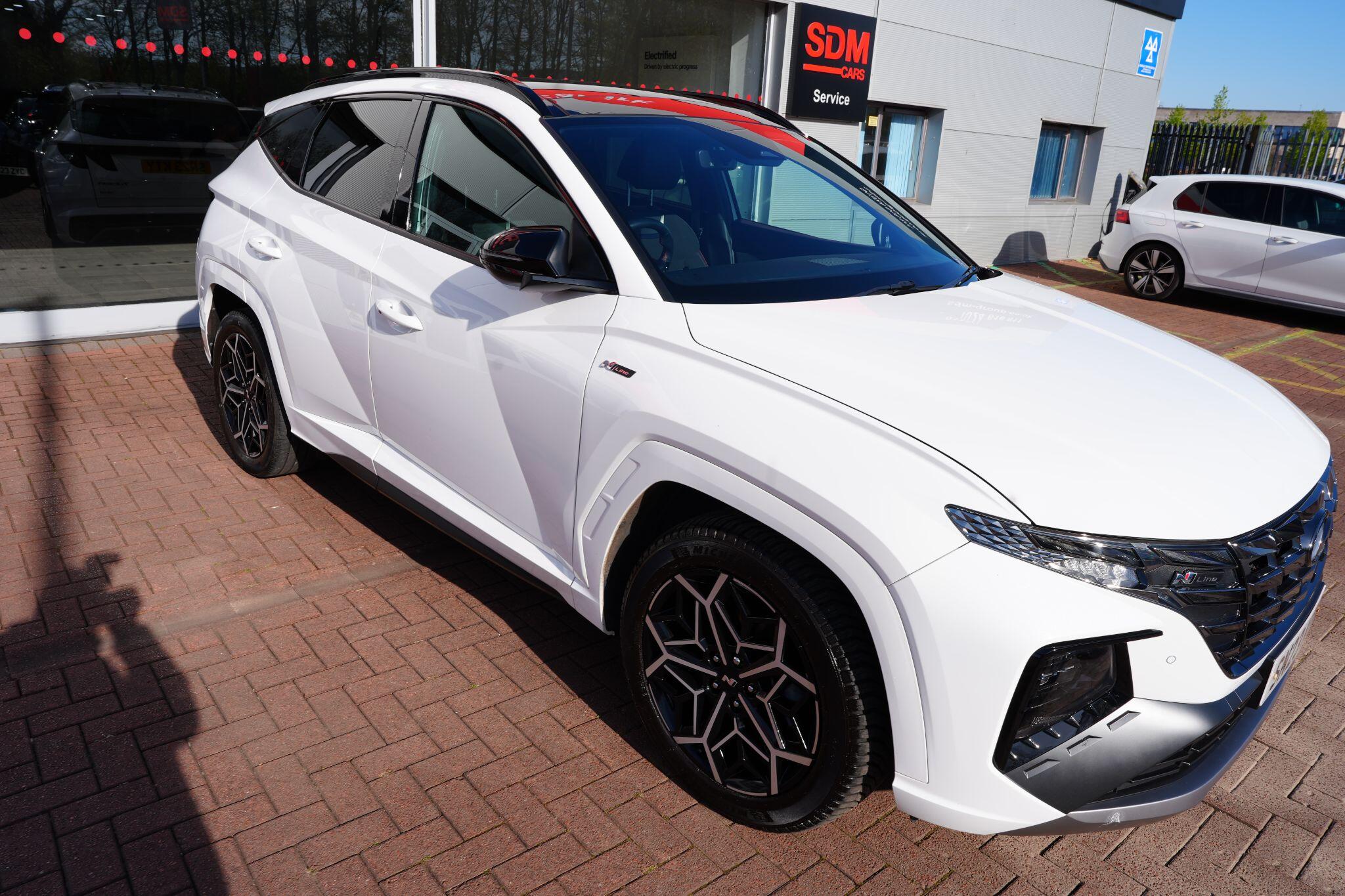This 2023 Hyundai TUCSON h T-GDi N Line S is a superb example, having had only one owner since new. This stylish SUV boasts a 1.6 litre petrol hybrid engine, meeting Euro 6 emissions standards. Inside, you'll find comfort and convenience with heated front seats, three zone climate control, and seamless phone connectivity via Android Auto. Driving is made easier with automatic headlights that activate at dusk, and smart adaptive cruise control with a stop and go function.The TUCSON N Line S offers a compelling driving experience, highlighted by its brisk 0-62mph acceleration in just 8.0 seconds, demonstrating its performance advantage over similar vehicles. Its practicality is further enhanced by a generous boot space, making it ideal for families or those needing extra room. Additionally, this model benefits from a low insurance group, indicating it is more economical to own and run compared to many other cars in its class.