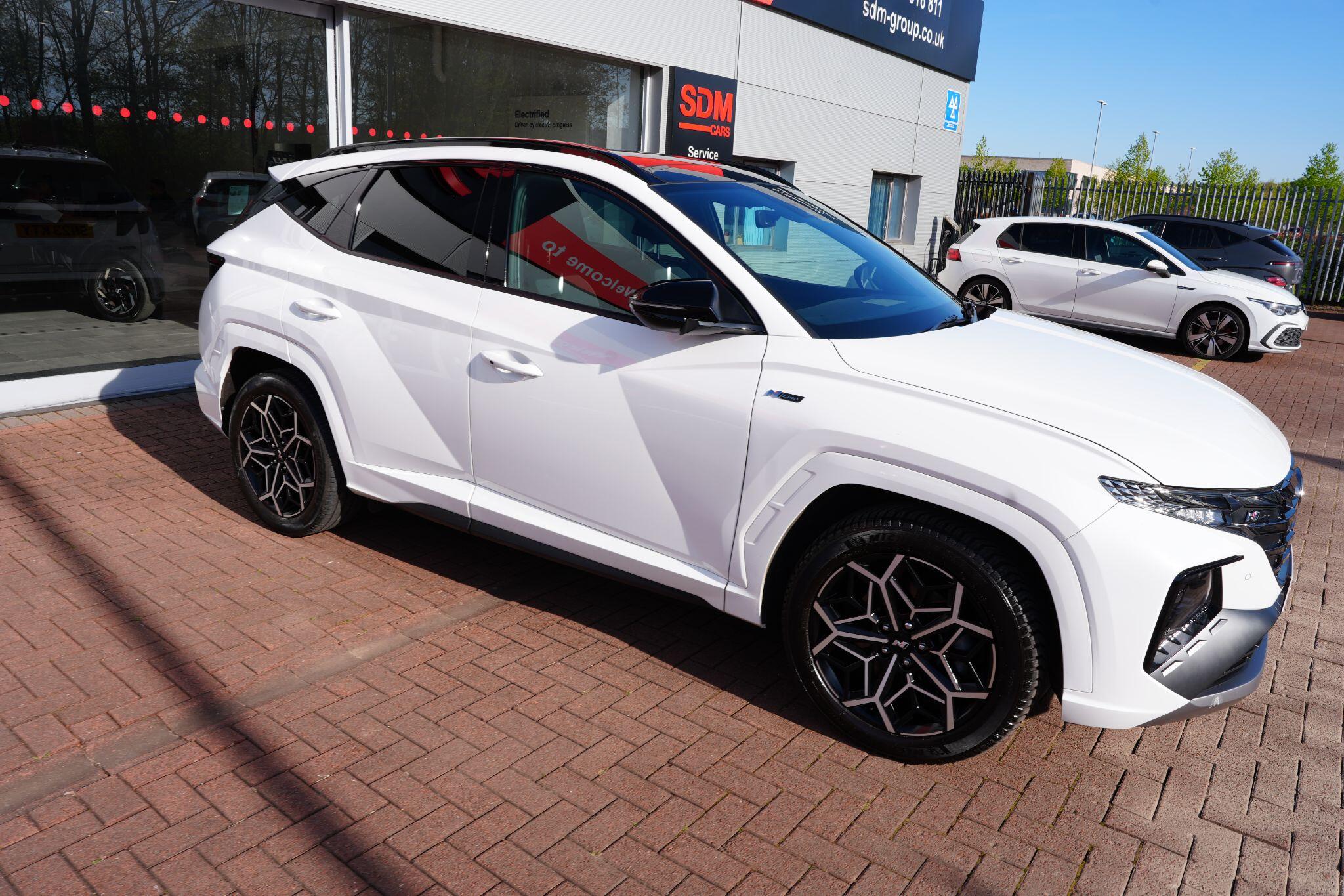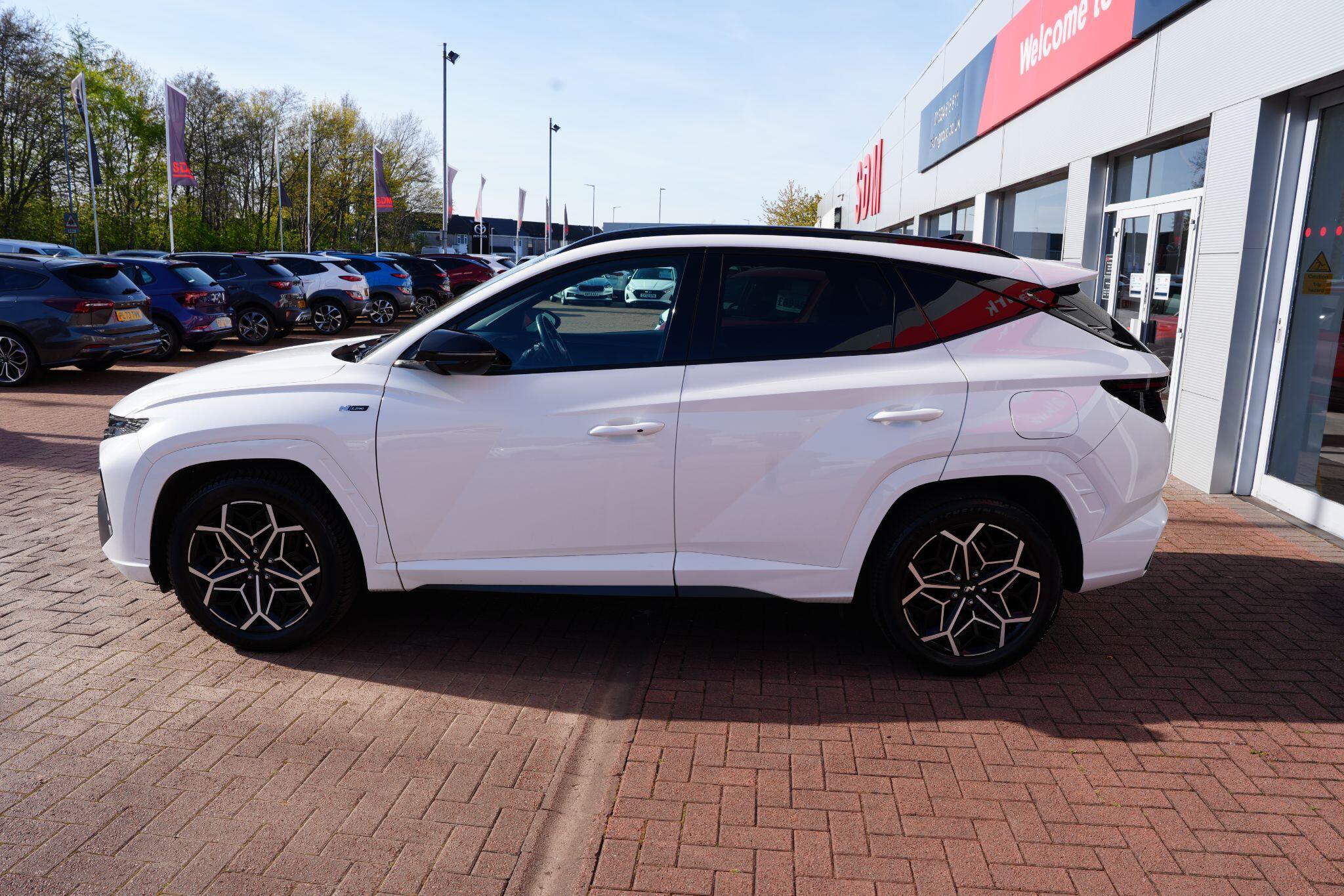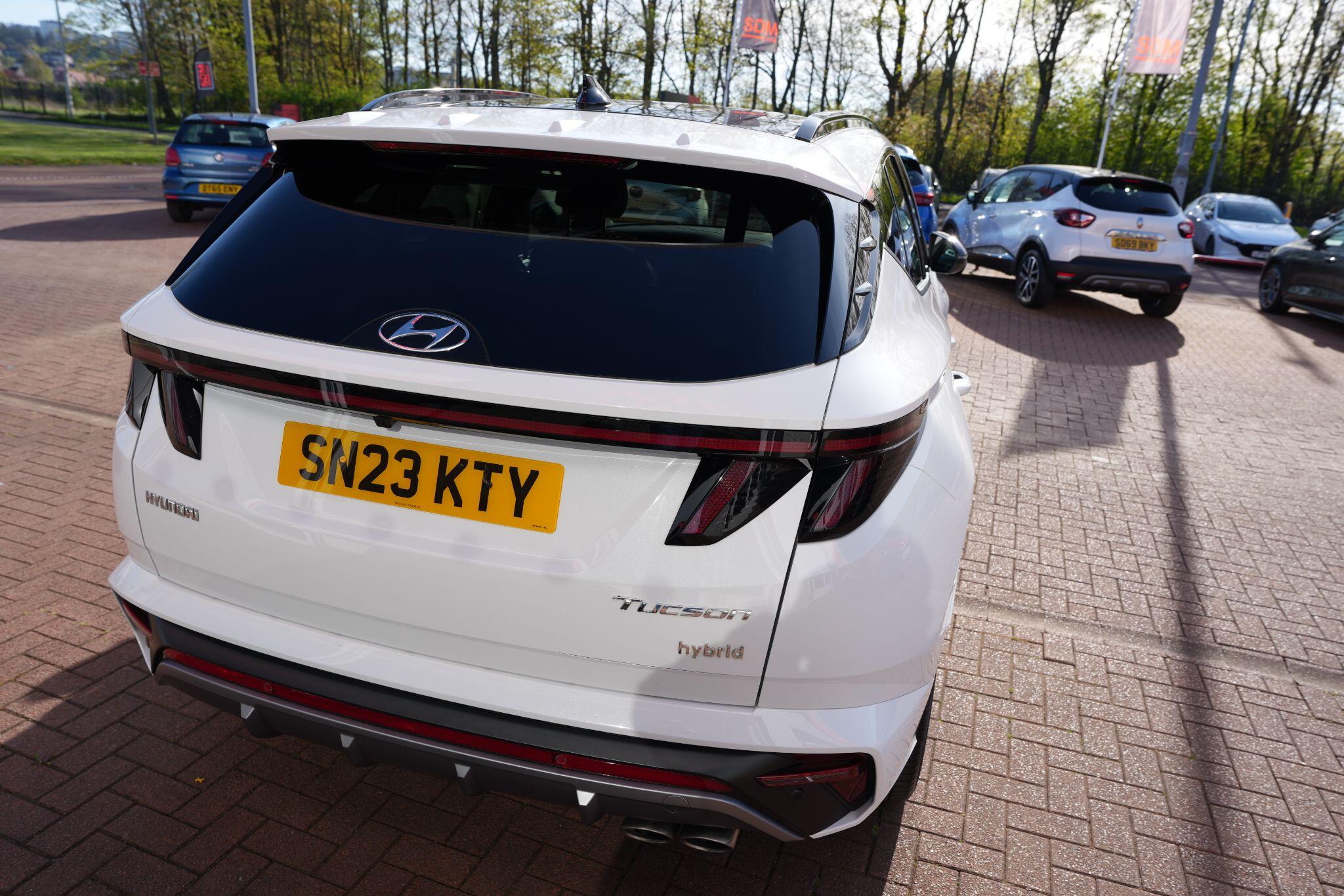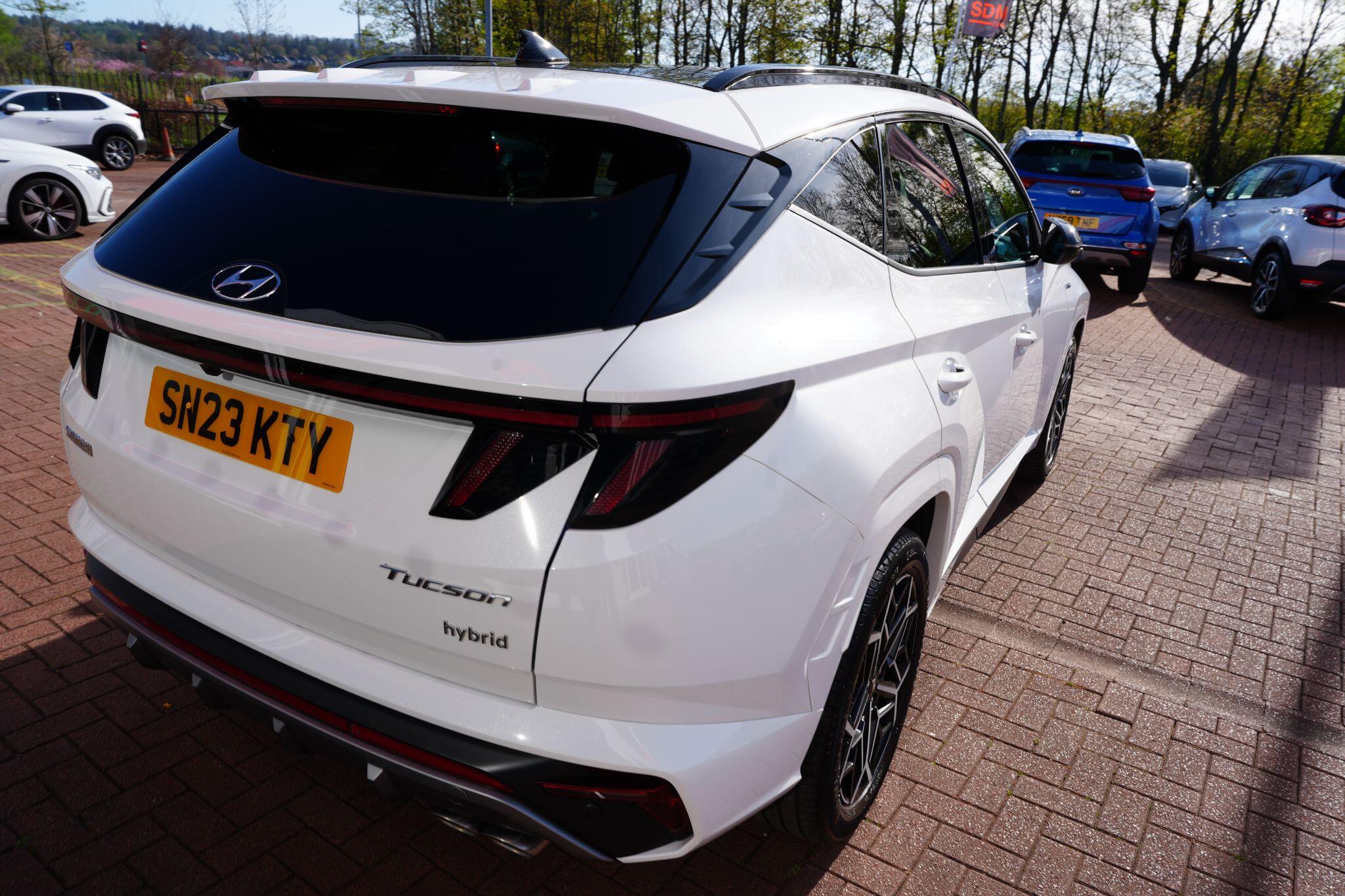 This 2023 Hyundai TUCSON h T-GDi N Line S is a superb example, having had only one owner since new. This stylish SUV boasts a 1.6 litre petrol hybrid engine, meeting Euro 6 emissions standards. Inside, you'll find comfort and convenience with heated front seats, three zone climate control, and seamless phone connectivity via Android Auto. Driving is made easier with automatic headlights that activate at dusk, and smart adaptive cruise control with a stop and go function.The TUCSON N Line S offers a compelling driving experience, highlighted by its brisk 0-62mph acceleration in just 8.0 seconds, demonstrating its performance advantage over similar vehicles. Its practicality is further enhanced by a generous boot space, making it ideal for families or those needing extra room. Additionally, this model benefits from a low insurance group, indicating it is more economical to own and run compared to many other cars in its class.