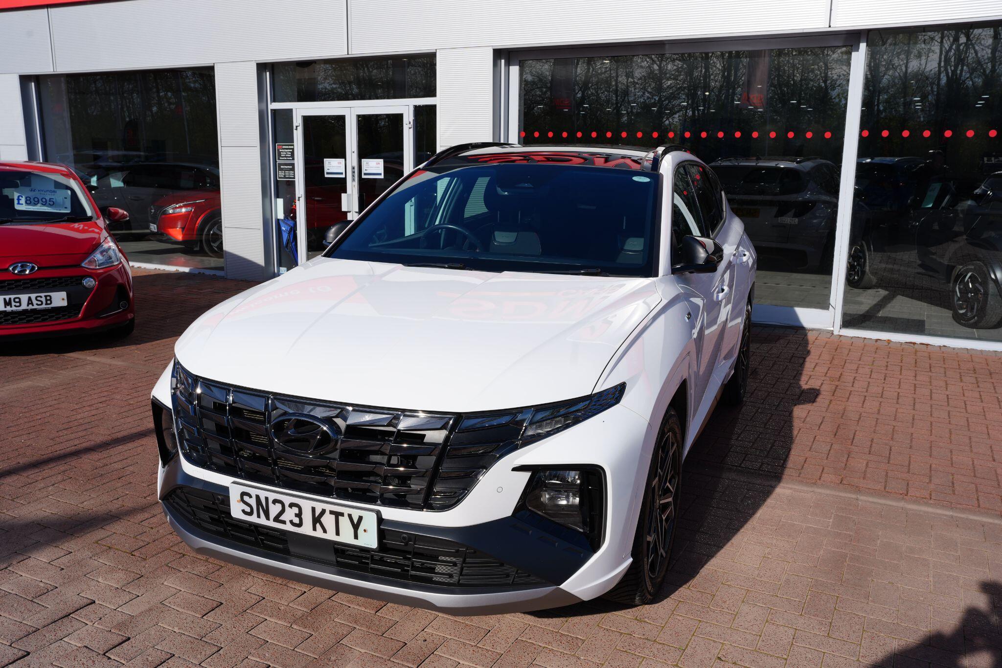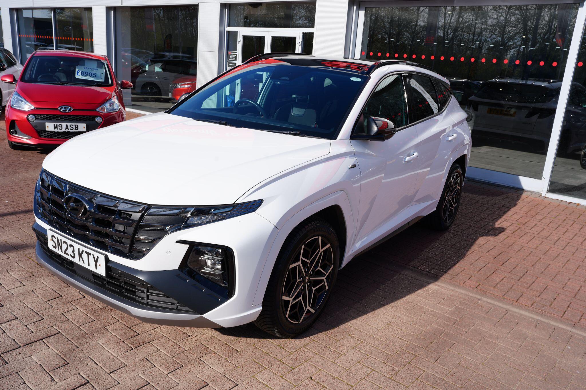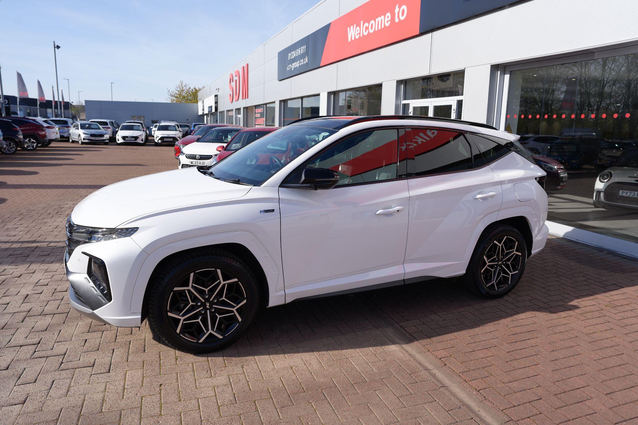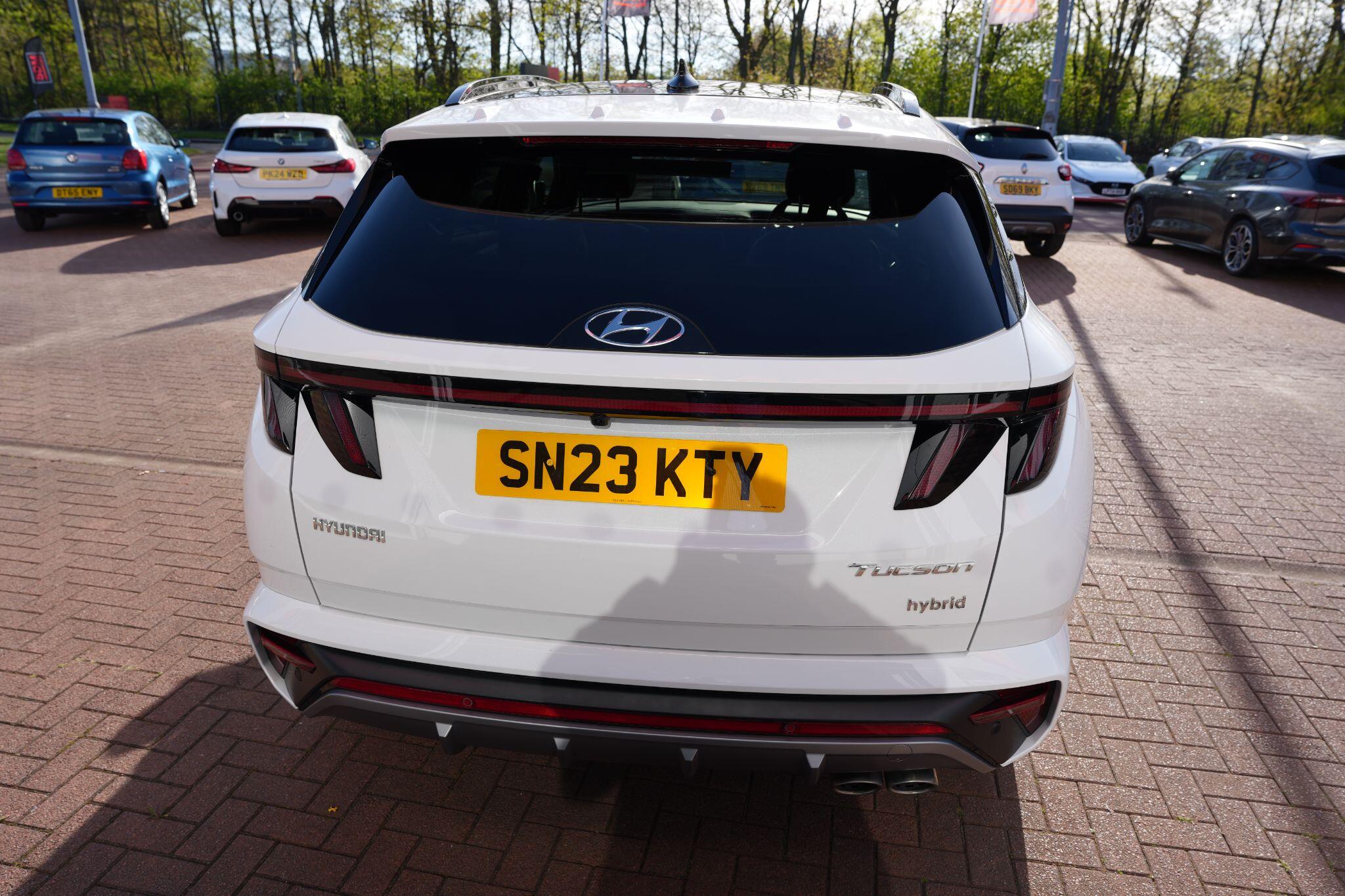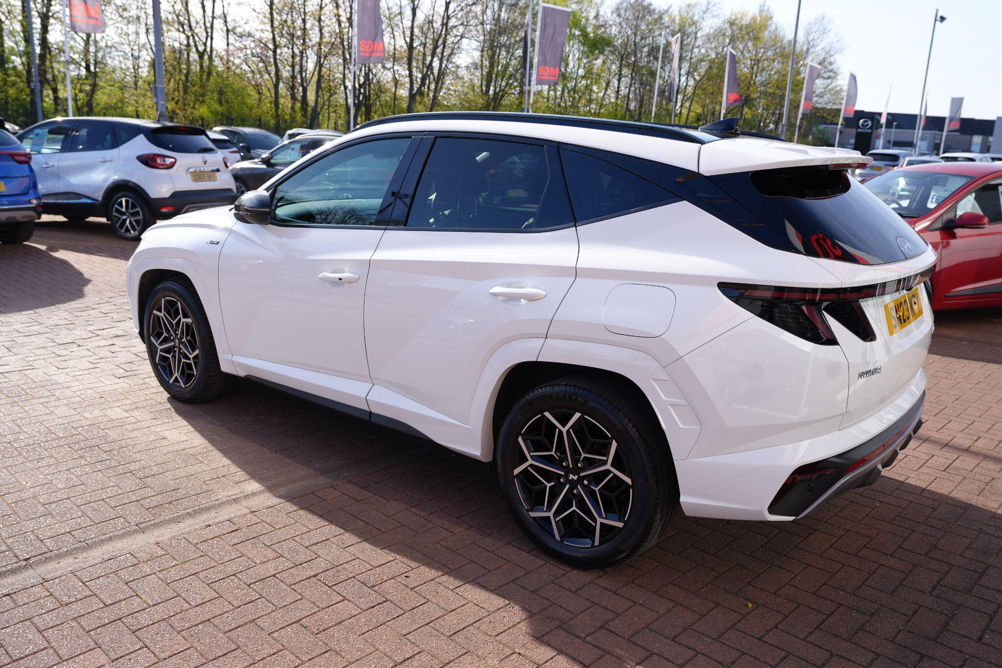 This 2023 Hyundai TUCSON h T-GDi N Line S is a superb example, having had only one owner since new. This stylish SUV boasts a 1.6 litre petrol hybrid engine, meeting Euro 6 emissions standards. Inside, you'll find comfort and convenience with heated front seats, three zone climate control, and seamless phone connectivity via Android Auto. Driving is made easier with automatic headlights that activate at dusk, and smart adaptive cruise control with a stop and go function.The TUCSON N Line S offers a compelling driving experience, highlighted by its brisk 0-62mph acceleration in just 8.0 seconds, demonstrating its performance advantage over similar vehicles. Its practicality is further enhanced by a generous boot space, making it ideal for families or those needing extra room. Additionally, this model benefits from a low insurance group, indicating it is more economical to own and run compared to many other cars in its class.