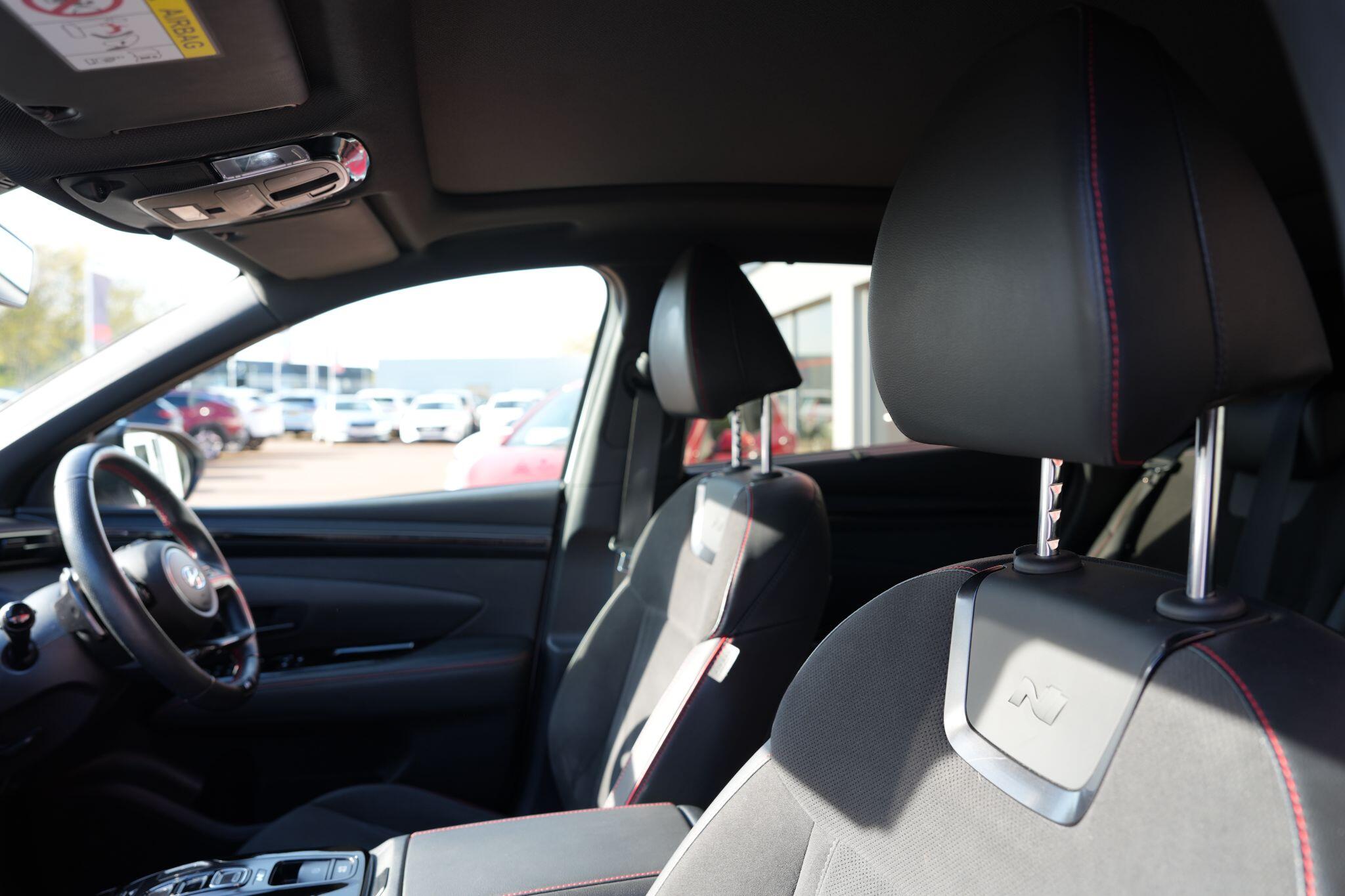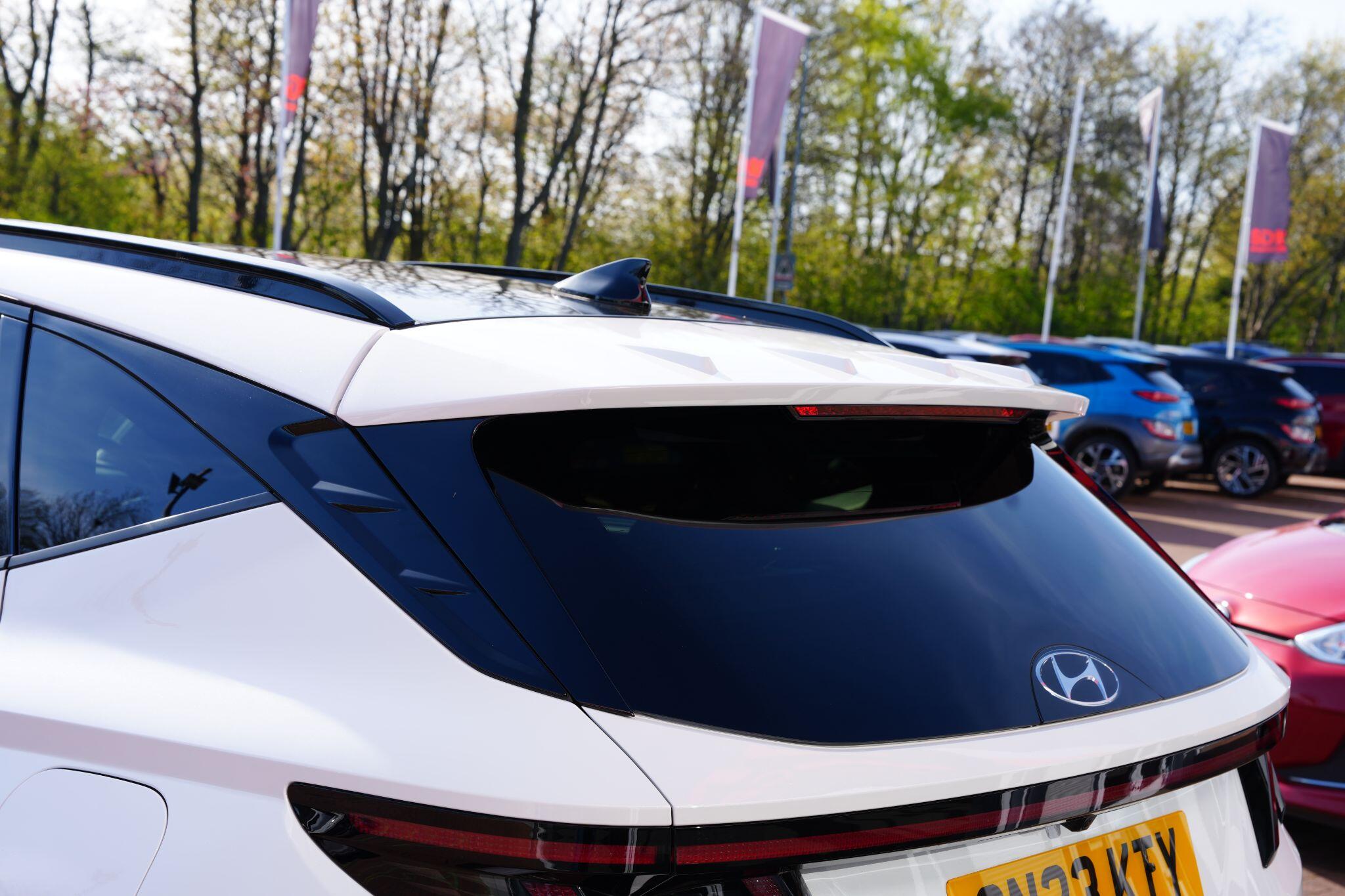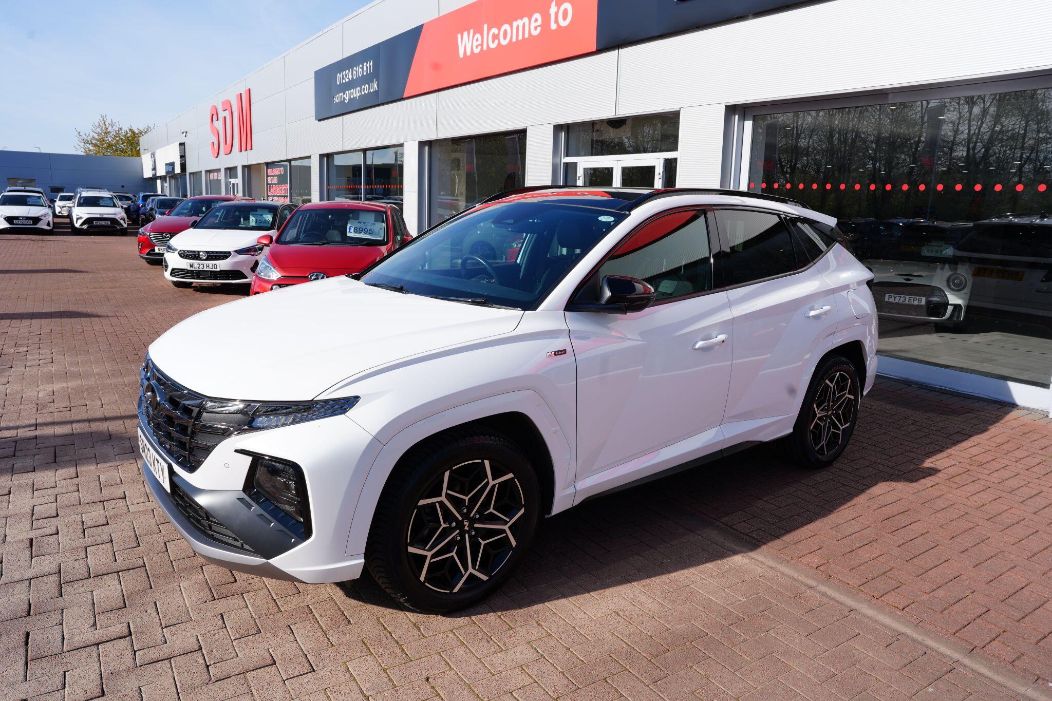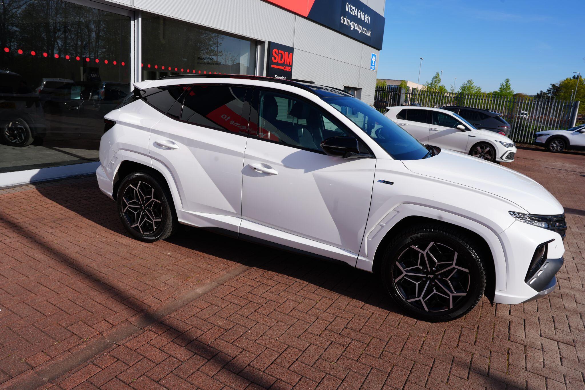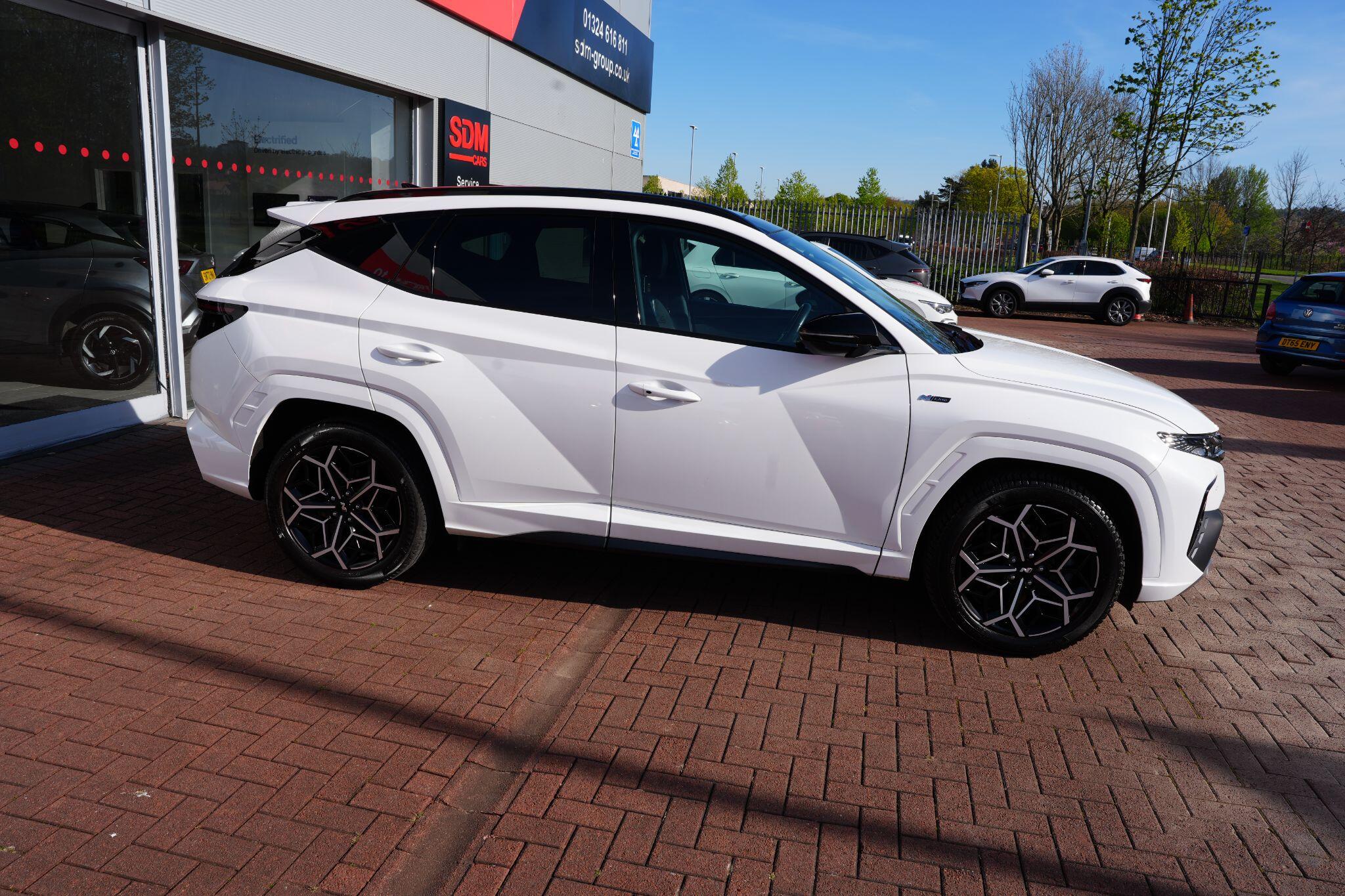 This 2023 Hyundai TUCSON h T-GDi N Line S is a superb example, having had only one owner since new. This stylish SUV boasts a 1.6 litre petrol hybrid engine, meeting Euro 6 emissions standards. Inside, you'll find comfort and convenience with heated front seats, three zone climate control, and seamless phone connectivity via Android Auto. Driving is made easier with automatic headlights that activate at dusk, and smart adaptive cruise control with a stop and go function.The TUCSON N Line S offers a compelling driving experience, highlighted by its brisk 0-62mph acceleration in just 8.0 seconds, demonstrating its performance advantage over similar vehicles. Its practicality is further enhanced by a generous boot space, making it ideal for families or those needing extra room. Additionally, this model benefits from a low insurance group, indicating it is more economical to own and run compared to many other cars in its class.