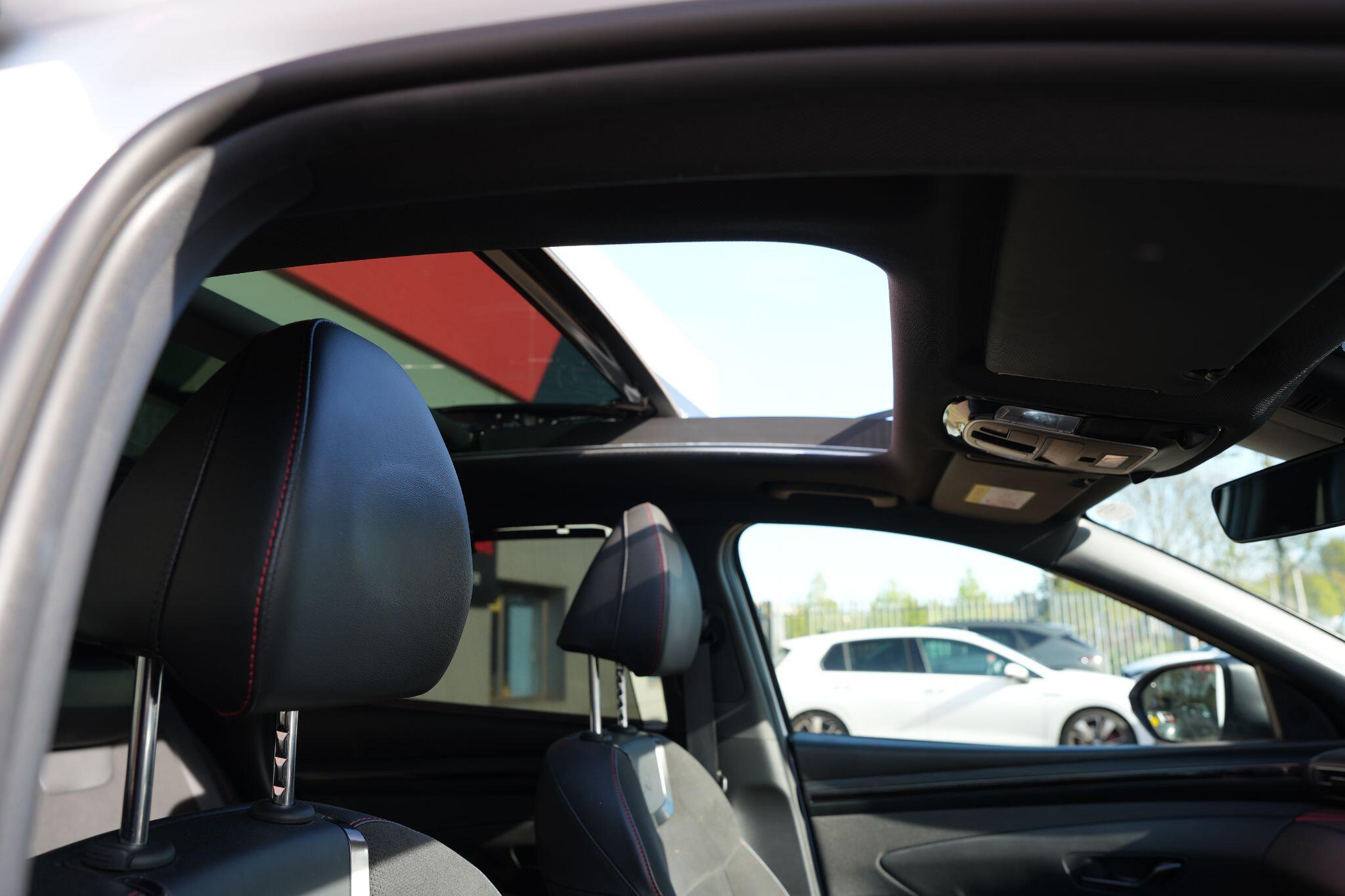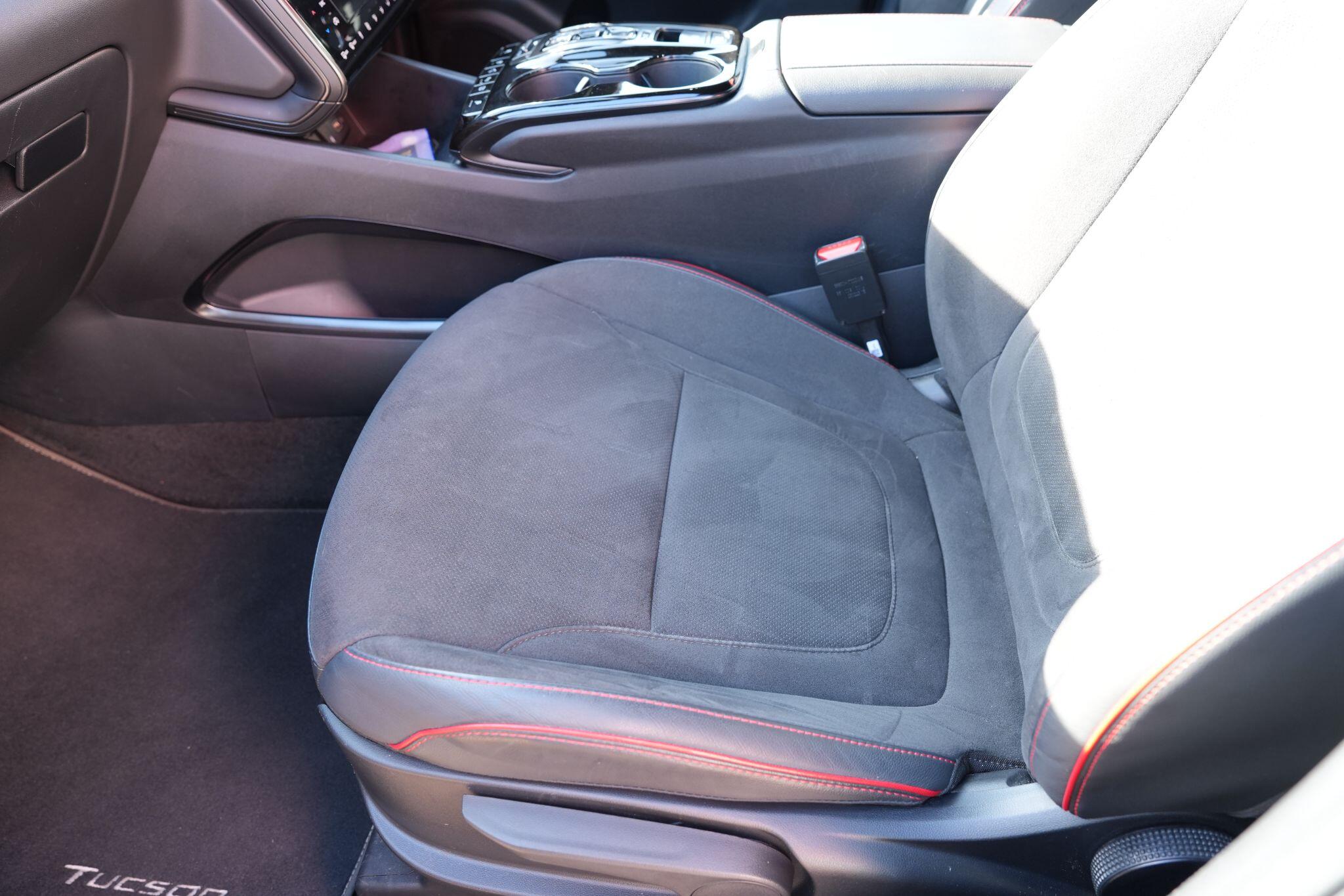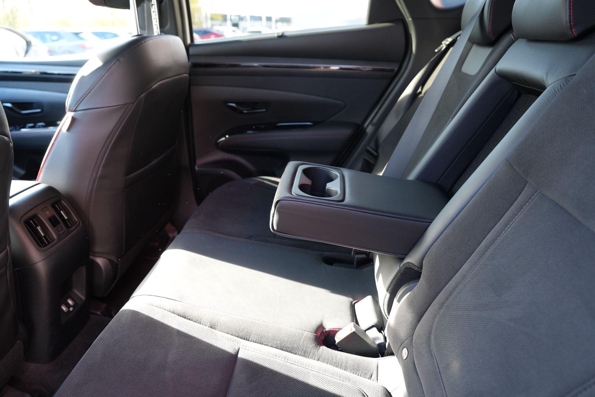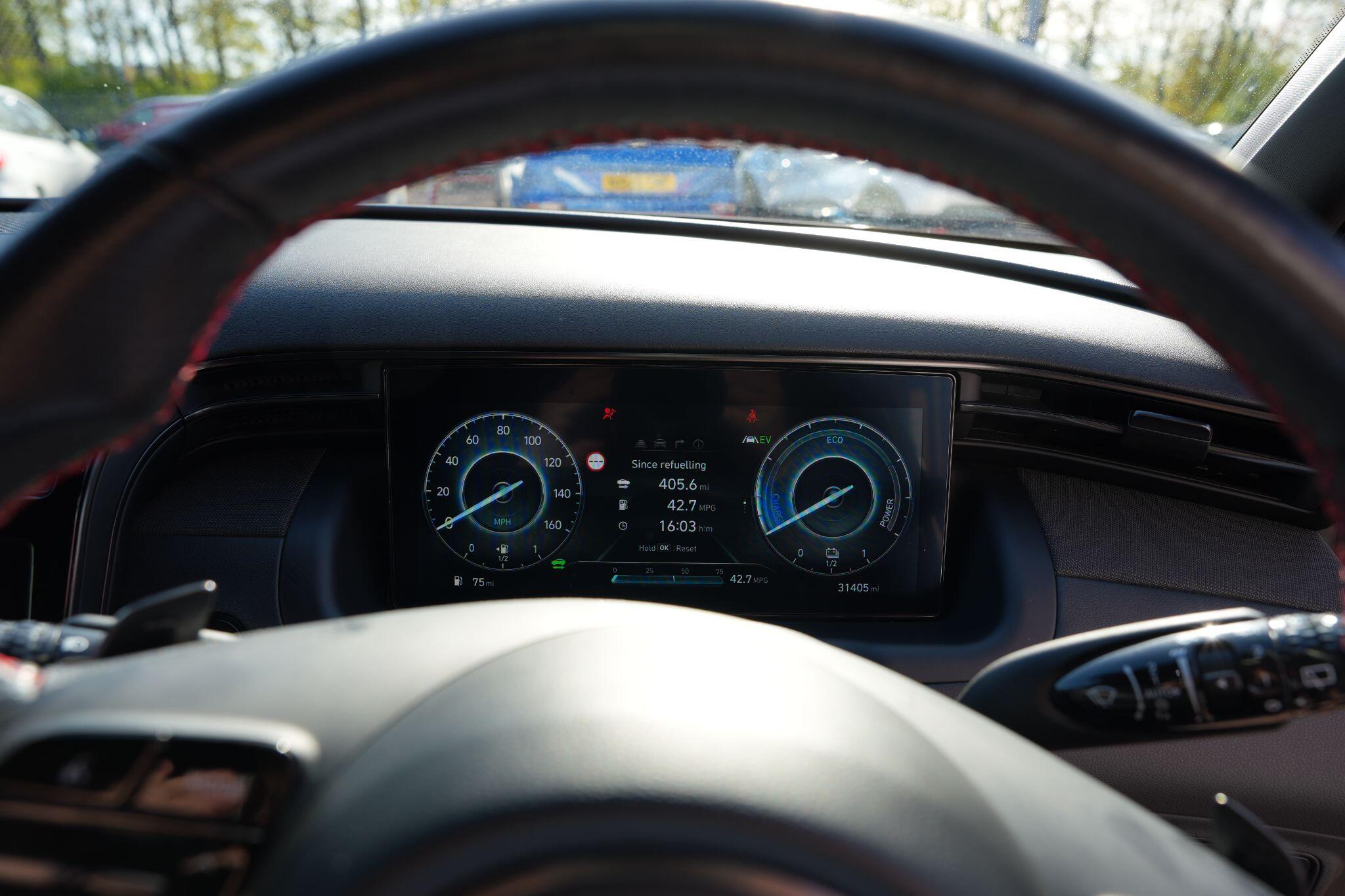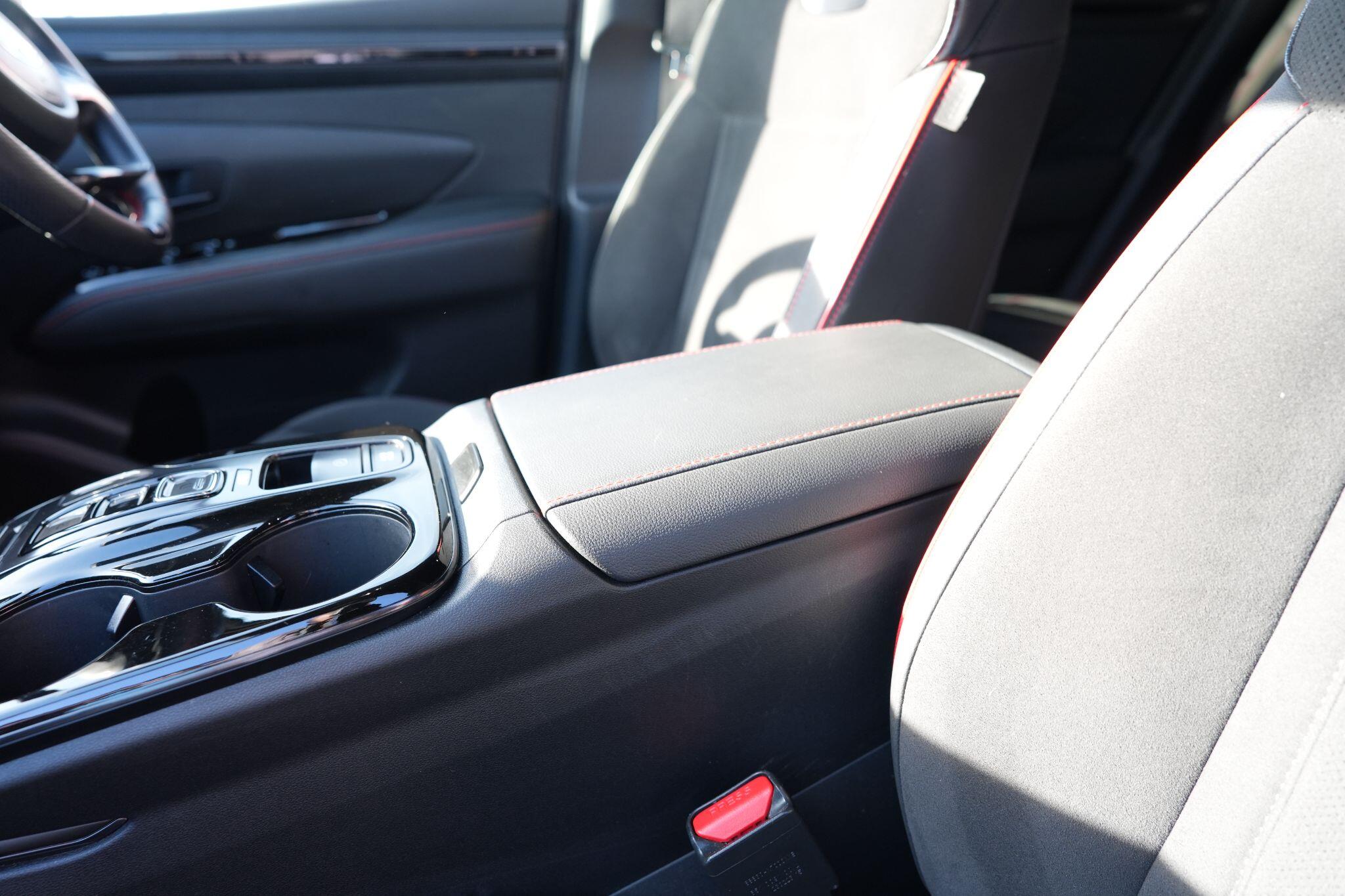 This 2023 Hyundai TUCSON h T-GDi N Line S is a superb example, having had only one owner since new. This stylish SUV boasts a 1.6 litre petrol hybrid engine, meeting Euro 6 emissions standards. Inside, you'll find comfort and convenience with heated front seats, three zone climate control, and seamless phone connectivity via Android Auto. Driving is made easier with automatic headlights that activate at dusk, and smart adaptive cruise control with a stop and go function.The TUCSON N Line S offers a compelling driving experience, highlighted by its brisk 0-62mph acceleration in just 8.0 seconds, demonstrating its performance advantage over similar vehicles. Its practicality is further enhanced by a generous boot space, making it ideal for families or those needing extra room. Additionally, this model benefits from a low insurance group, indicating it is more economical to own and run compared to many other cars in its class.