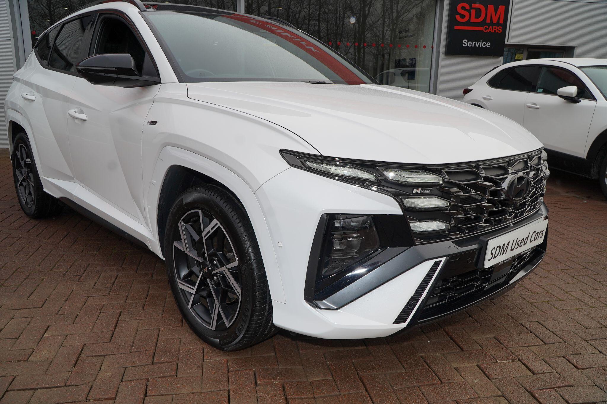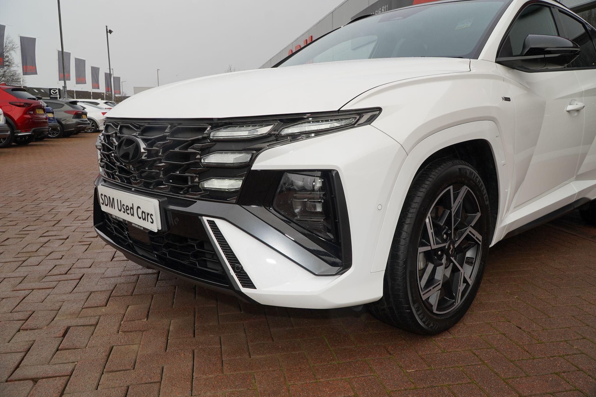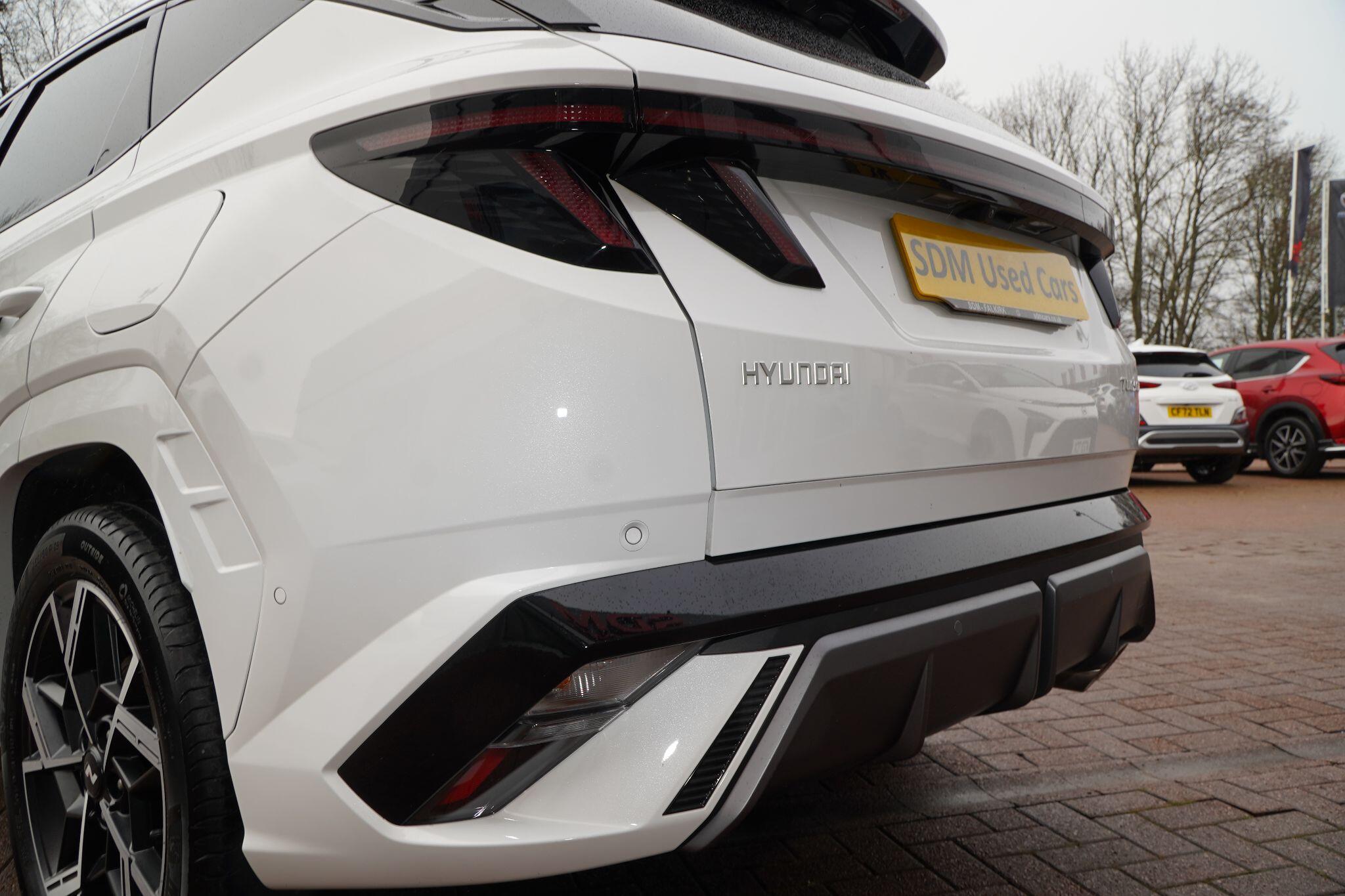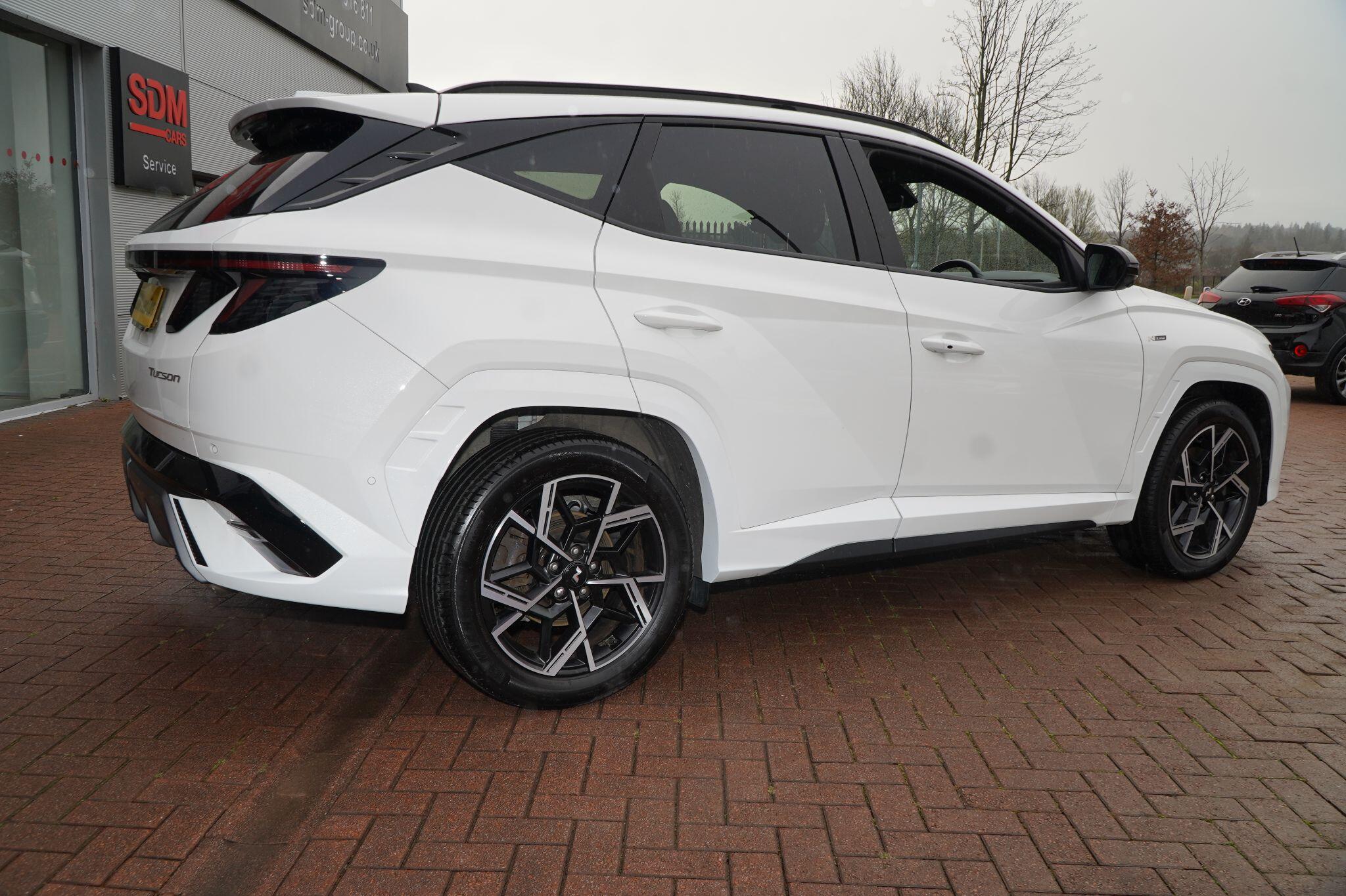This 2024 Hyundai TUCSON T-GDi N Line S presents an exceptional opportunity with its remarkably low mileage of just 6853 miles, a testament to its careful single ownership. This Euro 6 compliant 1.6 litre petrol model boasts the sporty N Line S trim, offering a refined driving experience. Inside, you'll find convenient features such as Cruise Control for effortless journeys, and seamless smartphone integration with Apple CarPlay. Keeping your devices powered is simple thanks to the Wireless Phone Charging Pad. Parking is made easier with the Surround View Monitor, providing a 360 degree camera view, and the Automatic Headlights with Dusk Sensor ensure optimal visibility.The TUCSON T-GDi N Line S stands out with its generous boot space, offering ample room for all your needs, and its placement in a low insurance group, making it an economical choice. These highlights, combined with its minimal mileage and single owner history, indicate that this Hyundai TUCSON offers superior value and a more desirable ownership proposition compared to other similar vehicles on the market.