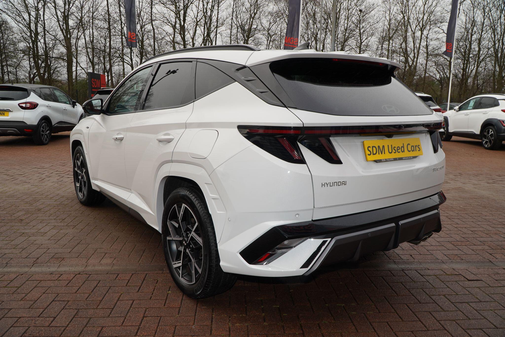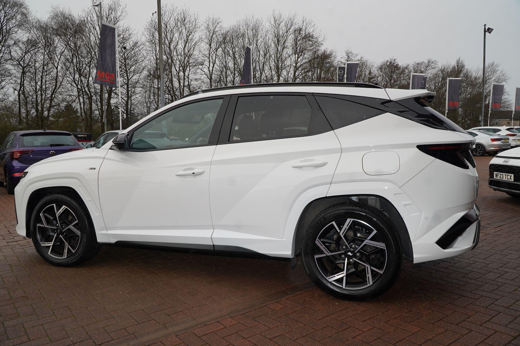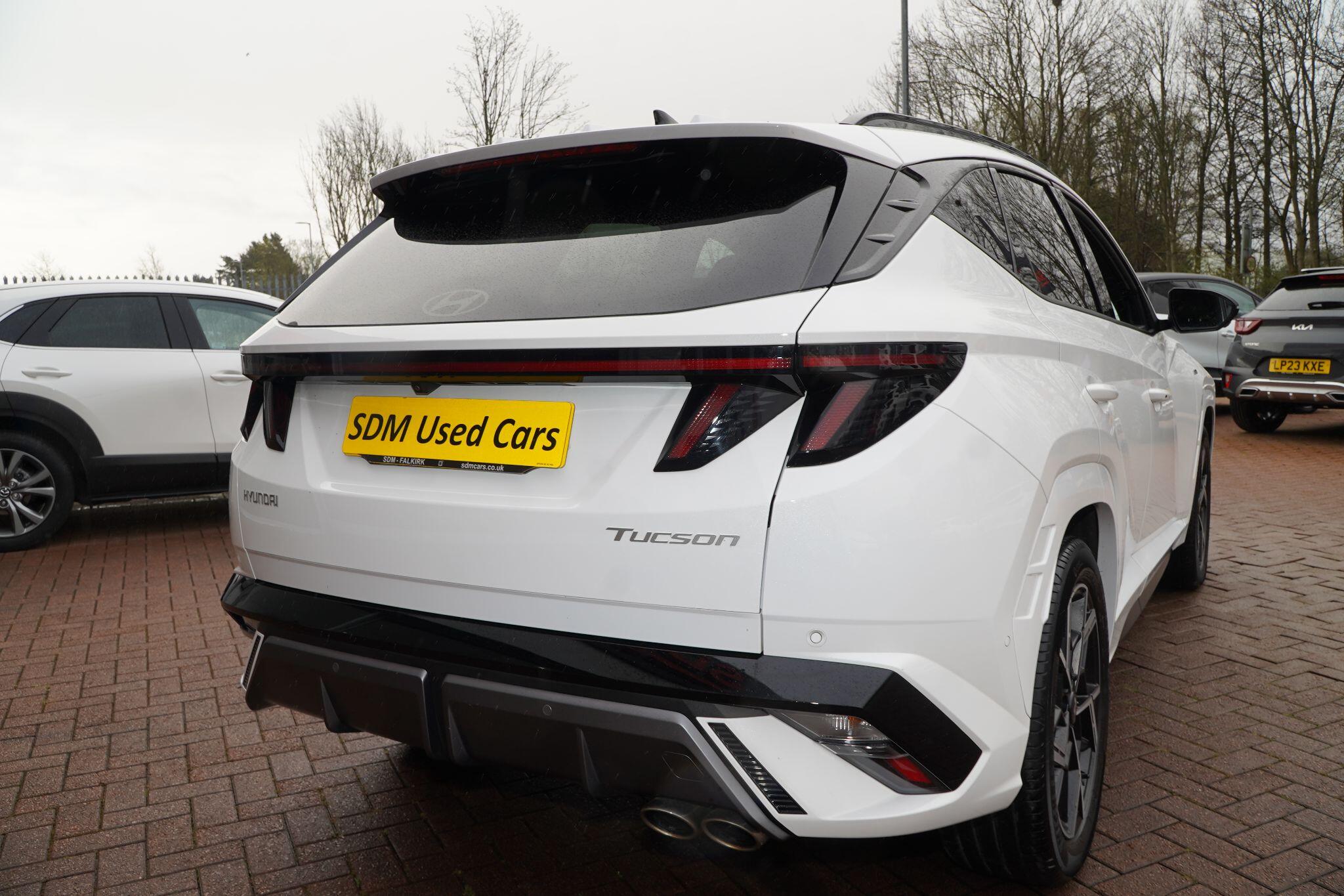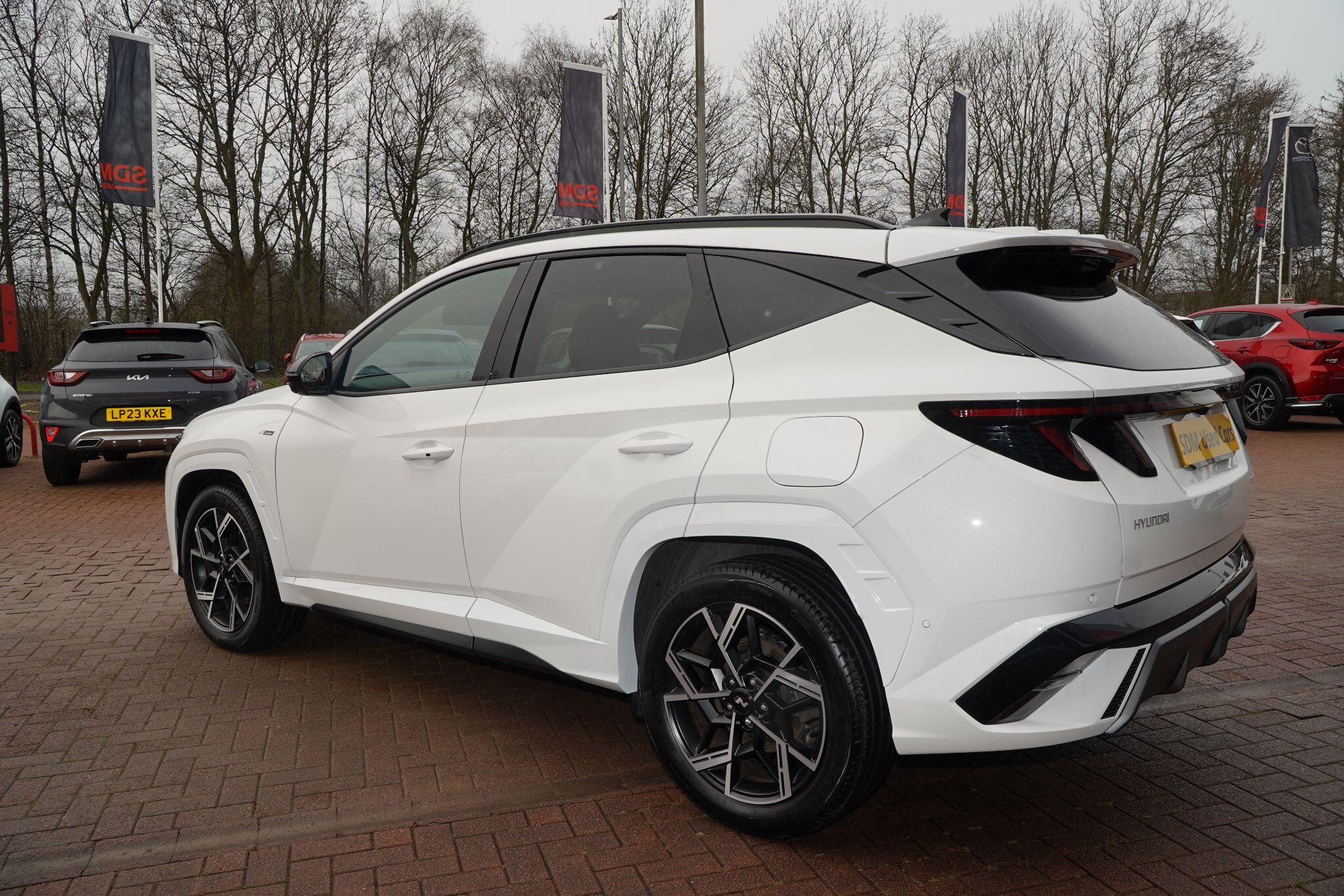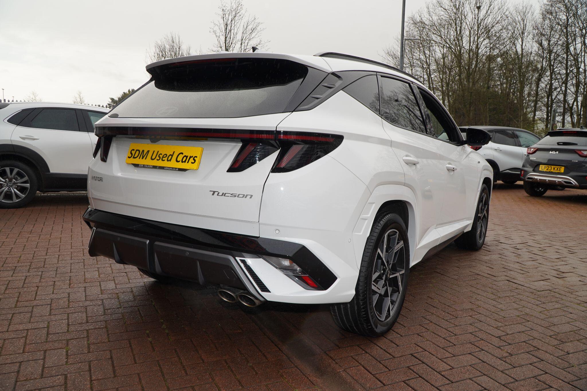 This 2024 Hyundai TUCSON T-GDi N Line S presents an exceptional opportunity with its remarkably low mileage of just 6853 miles, a testament to its careful single ownership. This Euro 6 compliant 1.6 litre petrol model boasts the sporty N Line S trim, offering a refined driving experience. Inside, you'll find convenient features such as Cruise Control for effortless journeys, and seamless smartphone integration with Apple CarPlay. Keeping your devices powered is simple thanks to the Wireless Phone Charging Pad. Parking is made easier with the Surround View Monitor, providing a 360 degree camera view, and the Automatic Headlights with Dusk Sensor ensure optimal visibility.The TUCSON T-GDi N Line S stands out with its generous boot space, offering ample room for all your needs, and its placement in a low insurance group, making it an economical choice. These highlights, combined with its minimal mileage and single owner history, indicate that this Hyundai TUCSON offers superior value and a more desirable ownership proposition compared to other similar vehicles on the market.