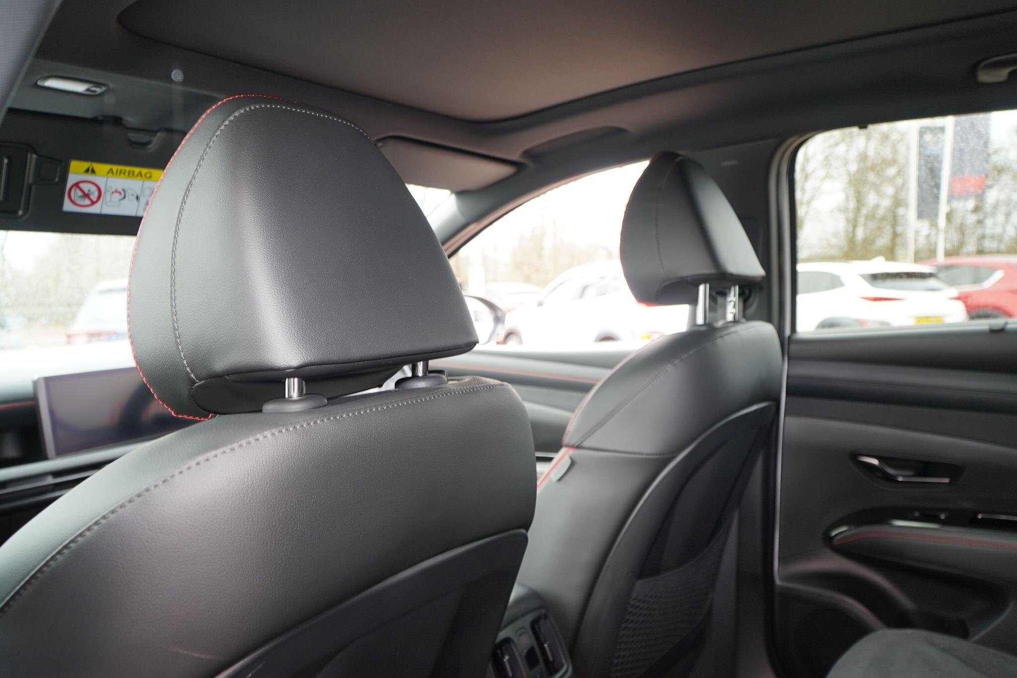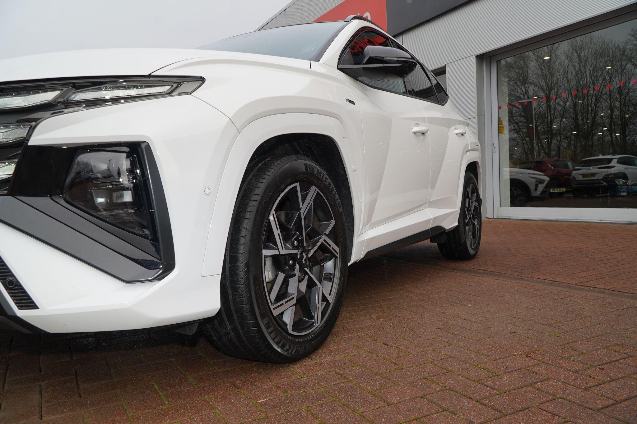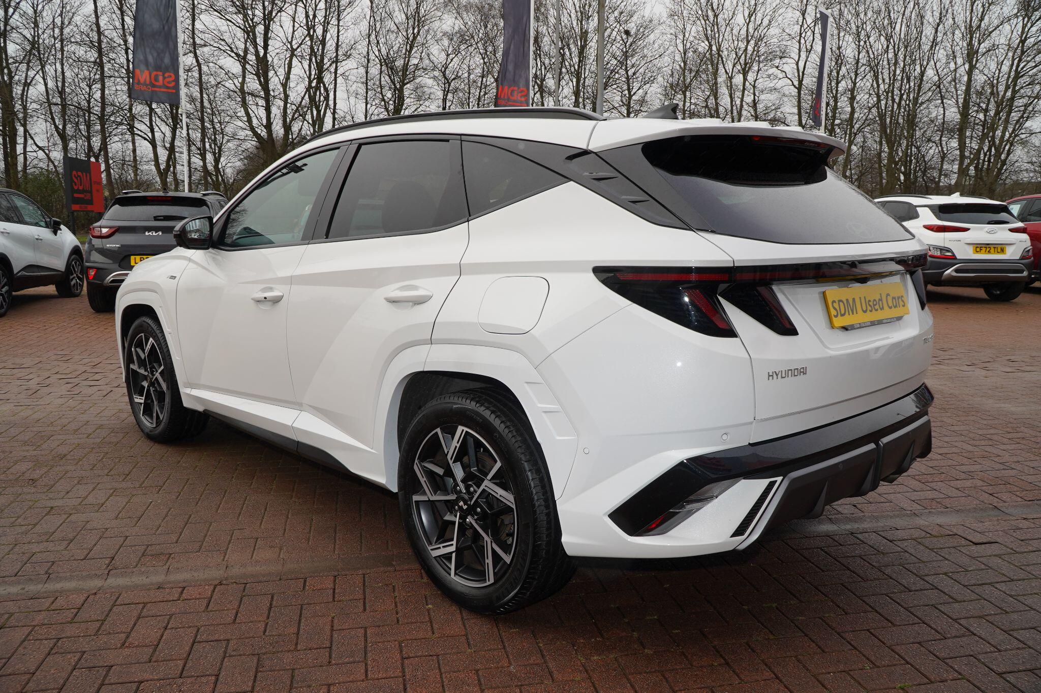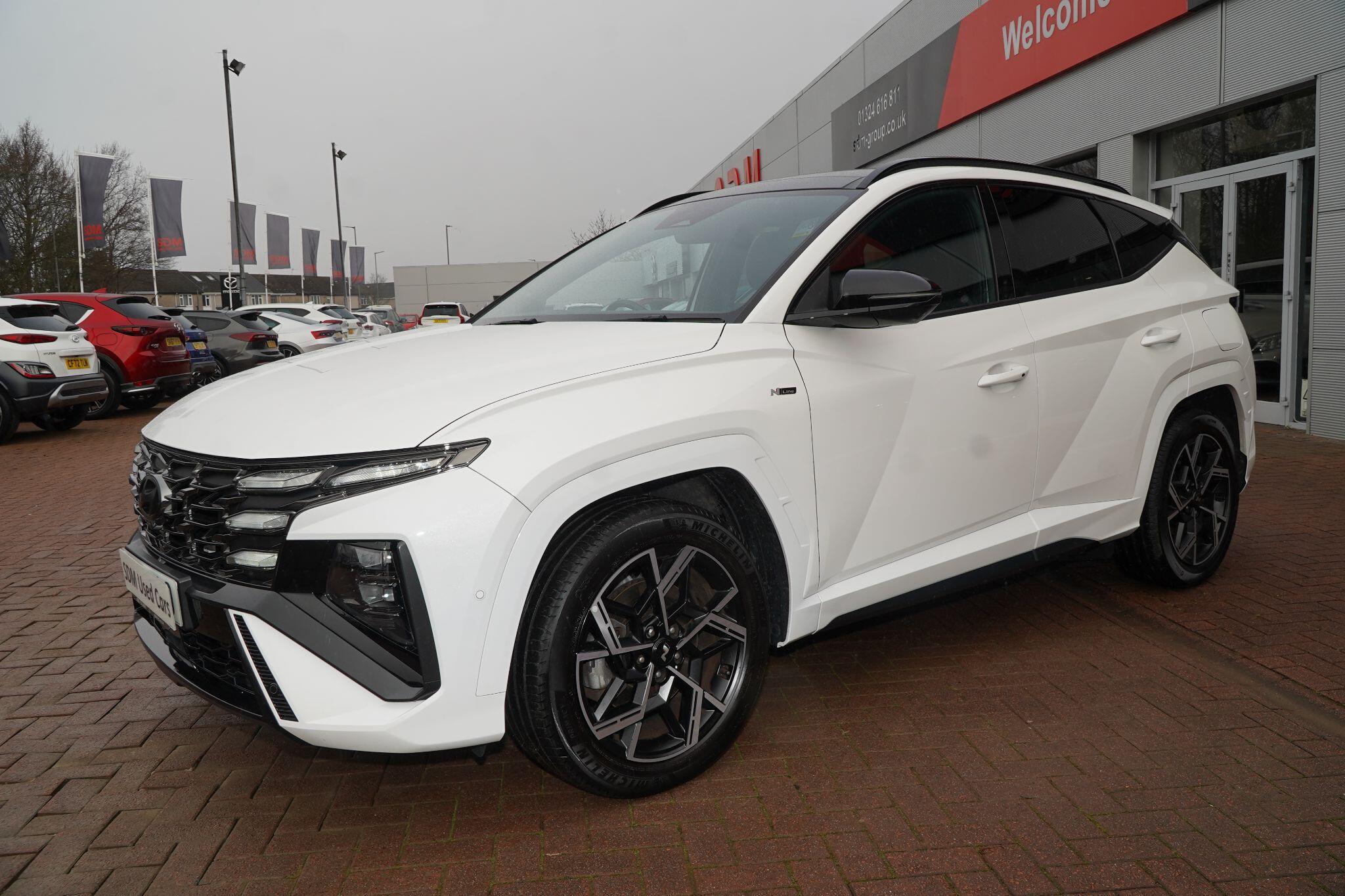 This 2024 Hyundai TUCSON T-GDi N Line S presents an exceptional opportunity with its remarkably low mileage of just 6853 miles, a testament to its careful single ownership. This Euro 6 compliant 1.6 litre petrol model boasts the sporty N Line S trim, offering a refined driving experience. Inside, you'll find convenient features such as Cruise Control for effortless journeys, and seamless smartphone integration with Apple CarPlay. Keeping your devices powered is simple thanks to the Wireless Phone Charging Pad. Parking is made easier with the Surround View Monitor, providing a 360 degree camera view, and the Automatic Headlights with Dusk Sensor ensure optimal visibility.The TUCSON T-GDi N Line S stands out with its generous boot space, offering ample room for all your needs, and its placement in a low insurance group, making it an economical choice. These highlights, combined with its minimal mileage and single owner history, indicate that this Hyundai TUCSON offers superior value and a more desirable ownership proposition compared to other similar vehicles on the market.