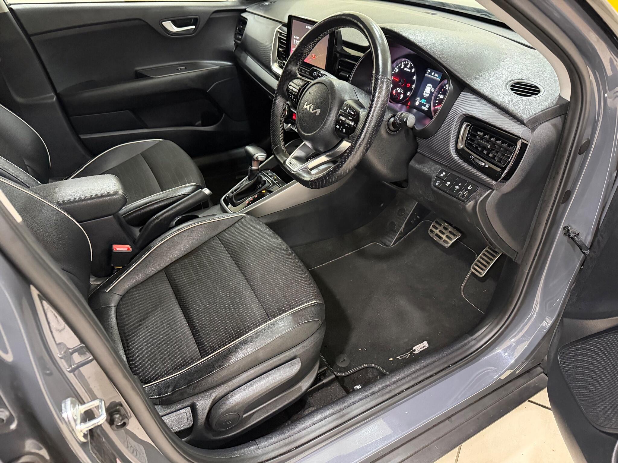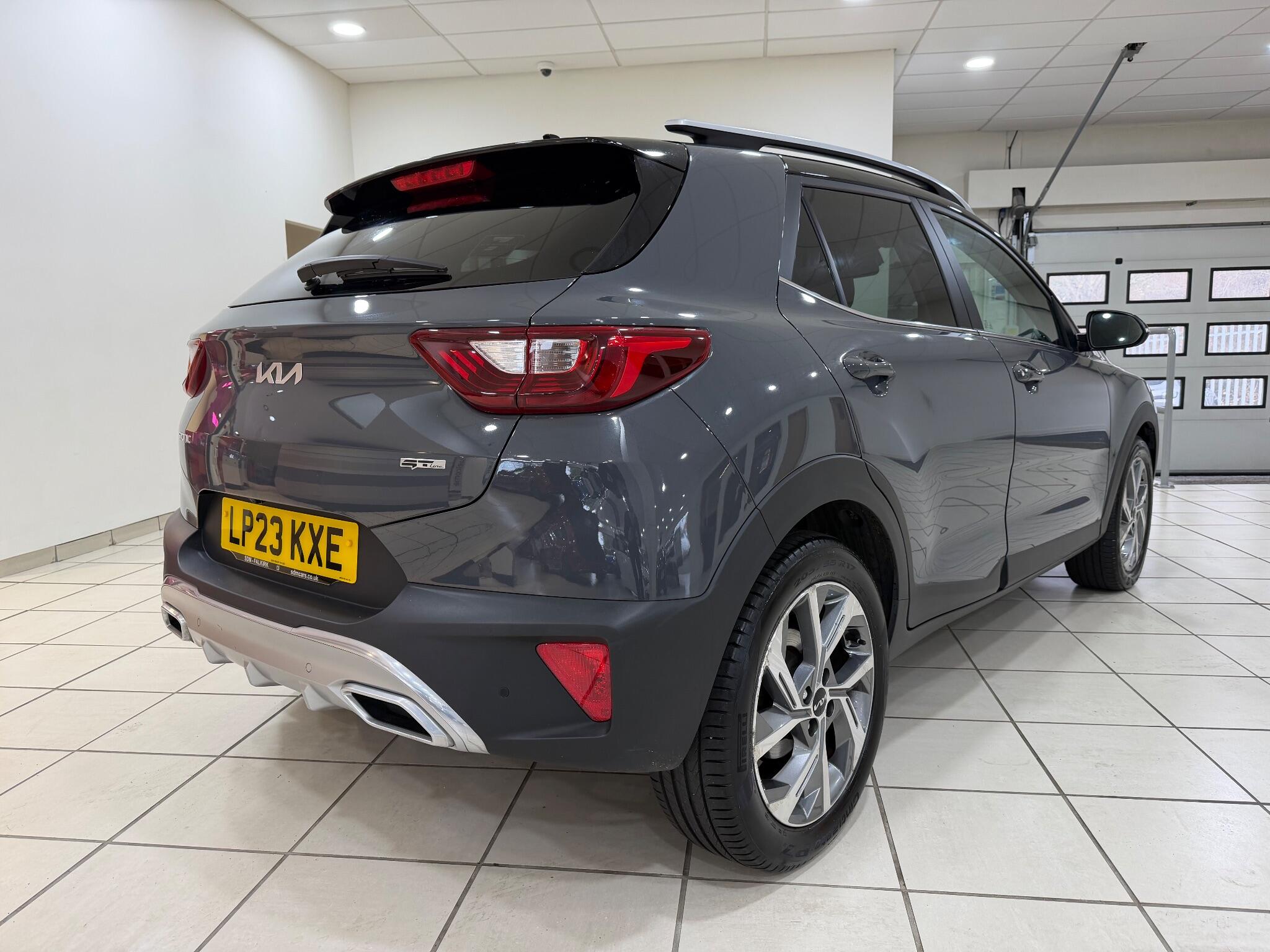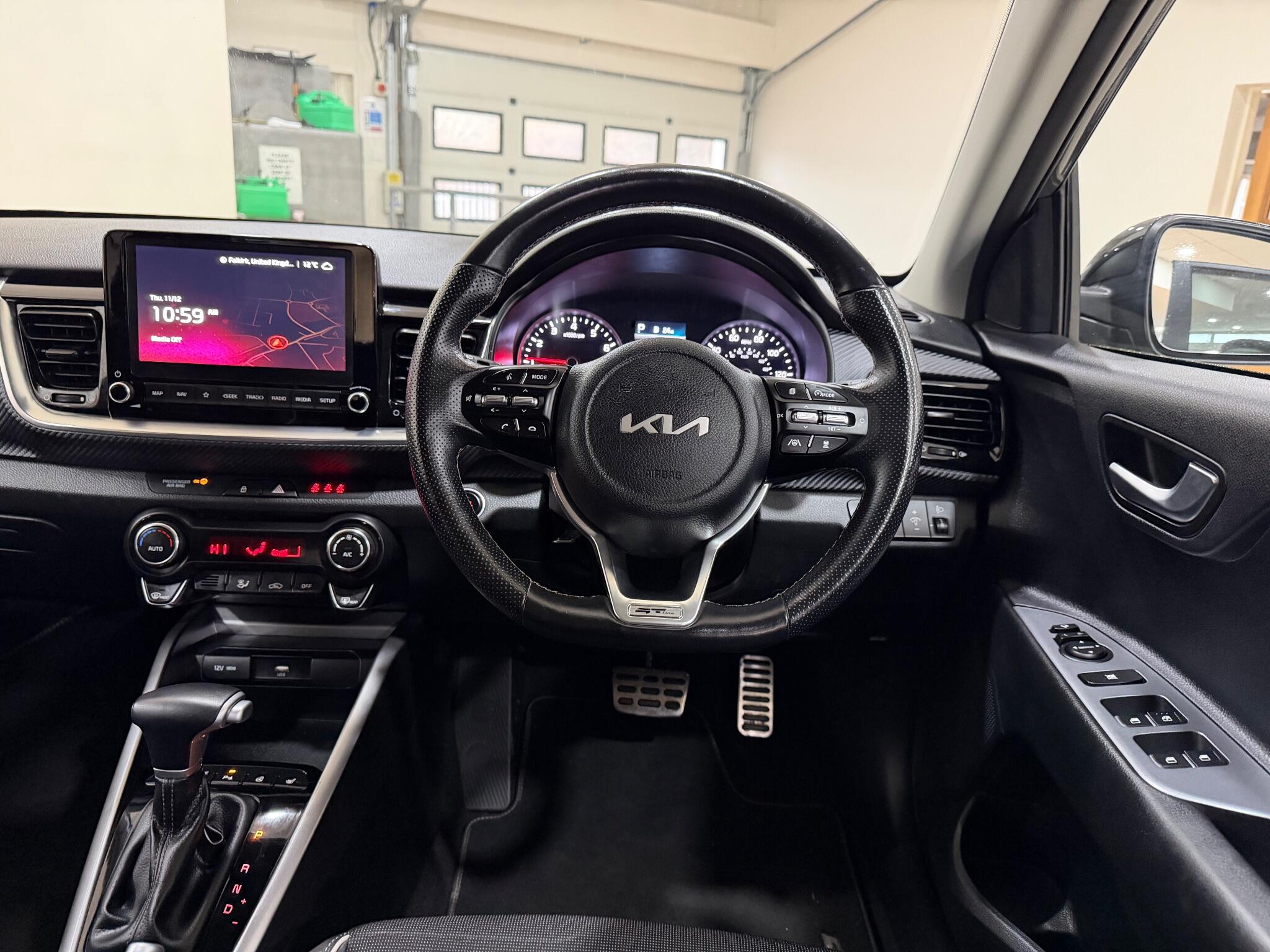 This 2023 Kia Stonic T GDi GT Line S offers exceptional peace of mind with a substantial 54 months remaining on its manufacturer warranty, complemented by a full service history and a single owner from new. This stylish compact SUV is powered by an efficient 1.0 litre petrol hybrid engine, meeting Euro 6 emissions standards. The GT Line S trim level ensures a premium experience, featuring keyless entry with a smart key and engine start stop button, alongside seamless integration of your smartphone through Android Auto and Apple CarPlay, both equipped with voice control. Navigating tight spaces is made effortless with a reversing camera system and front parking sensors, enhancing the parking assistance features.The Kia Stonic T GDi GT Line S stands out with its low CO2 emissions, indicating a more environmentally conscious choice compared to many other vehicles in its class. Furthermore, its placement in a low insurance group means that running costs are kept to a minimum, making it an attractive option for a wide range of drivers. This combination of advanced technology, practical features, and economical running costs makes this particular Stonic a compelling proposition for those seeking a well maintained and feature rich compact SUV.