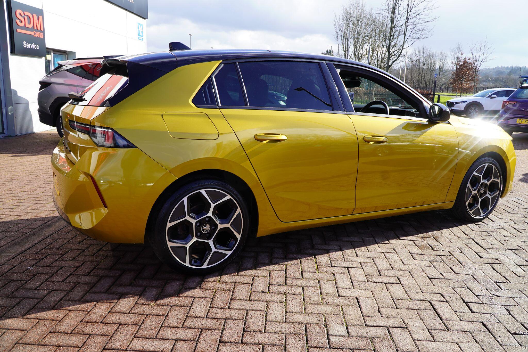 This 2023 Vauxhall Astra Turbo Ultimate is a superb example, having had only one owner since new. This Euro 6 compliant 1.2 litre petrol model comes in the top of the range Ultimate trim, offering a refined driving experience. You'll appreciate the convenience of IntelliLux LED headlights that automatically adjust for optimal visibility, and the heated, flat bottom steering wheel wrapped in perforated leather for comfort on colder days. Inside, the dual zone electronic climate control ensures everyone stays comfortable, while the Intelli-Vision system, complete with 360 degree cameras and front and rear parking sensors, makes manoeuvring effortless. Plus, with wireless phone charging, staying connected is simpler than ever.The Astra Turbo Ultimate boasts a generous boot space, providing ample room for all your luggage or shopping needs. Its performance is equally impressive, achieving 0 to 60 miles per hour in just 9.7 seconds, demonstrating a lively and responsive drive. These features, combined with its single owner provenance and comprehensive specification, set this Vauxhall Astra apart from other vehicles in its class, offering a compelling package of style, technology, and practicality.